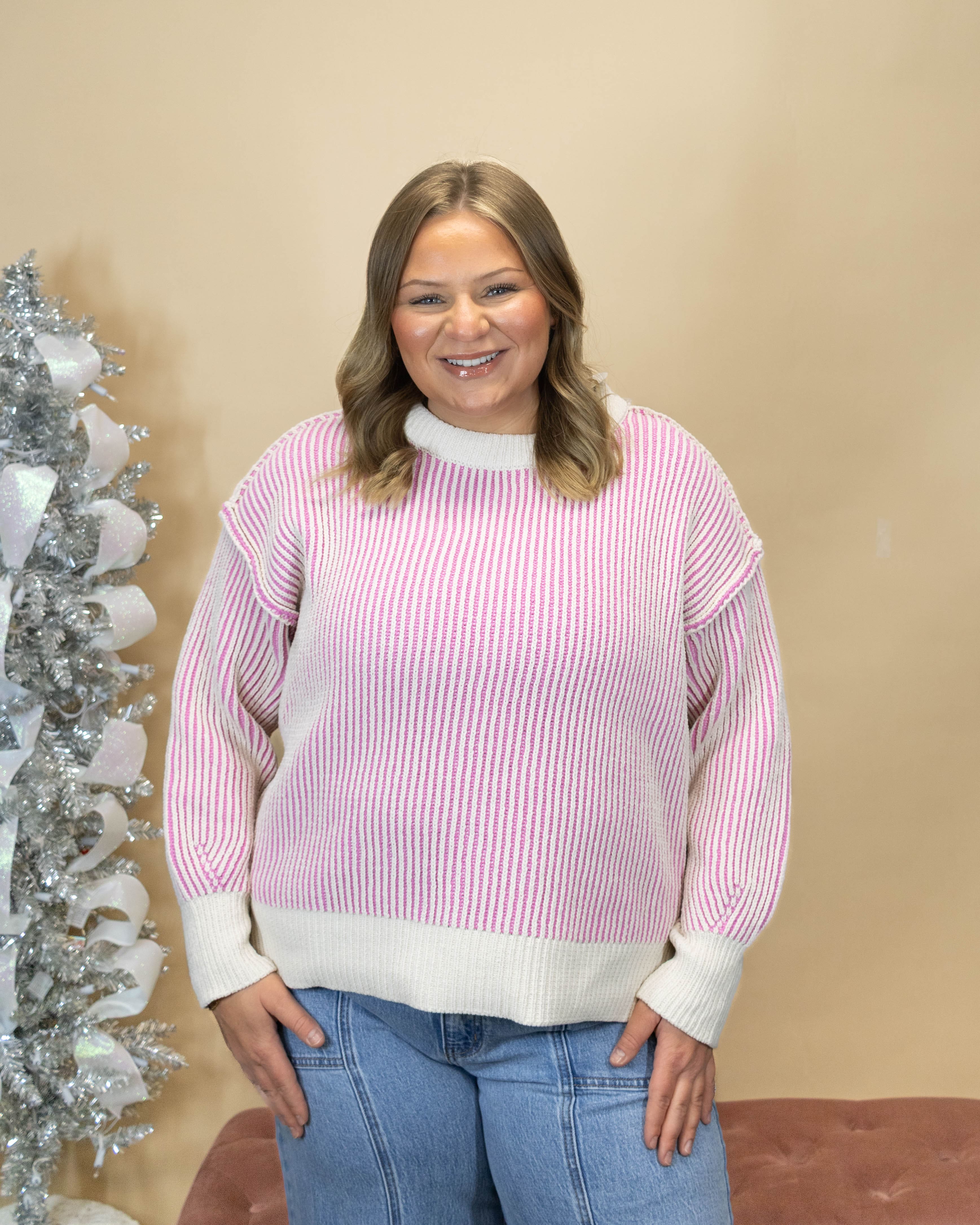 Stay cozy and stylish this winter with the Over The Time Sweater in Candy Pink. Its vibrant Barbie pink stripes brighten up any cold day, while the unique textured knit adds a fun twist to your wardrobe. Crafted to be heavy and warm, this sweater keeps you comfortable without sacrificing bold fashion. Perfect for layering or wearing alone, it’s your go-to piece for warmth and a pop of playful color all season long.