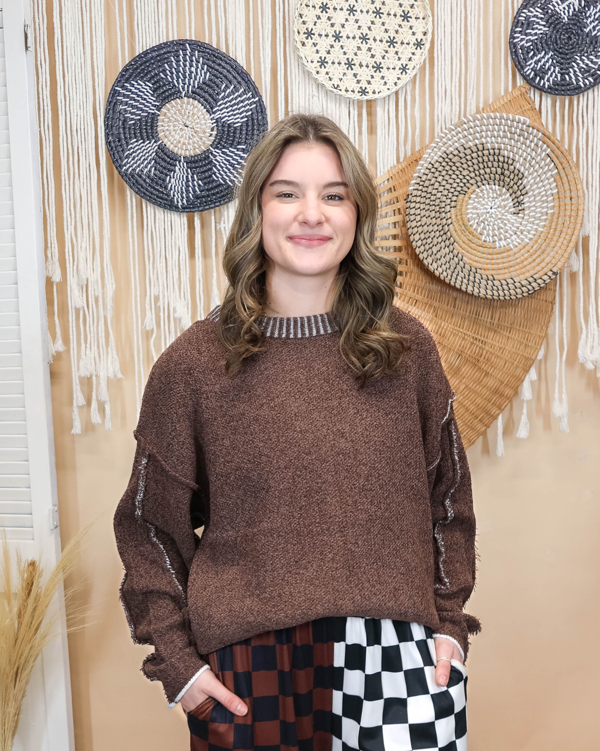 Elevate your everyday wardrobe with this versatile brown sweater, designed for effortless style. Crisp white detailing traces the sleeves and collar, creating a polished contrast that adds visual interest without overwhelming your look. The thoughtful color combination makes it easy to pair with virtually anything in your closet, while the quality construction ensures lasting comfort through countless wears. Perfect for layering or wearing solo, this piece transitions seamlessly from casual weekends to relaxed office settings.