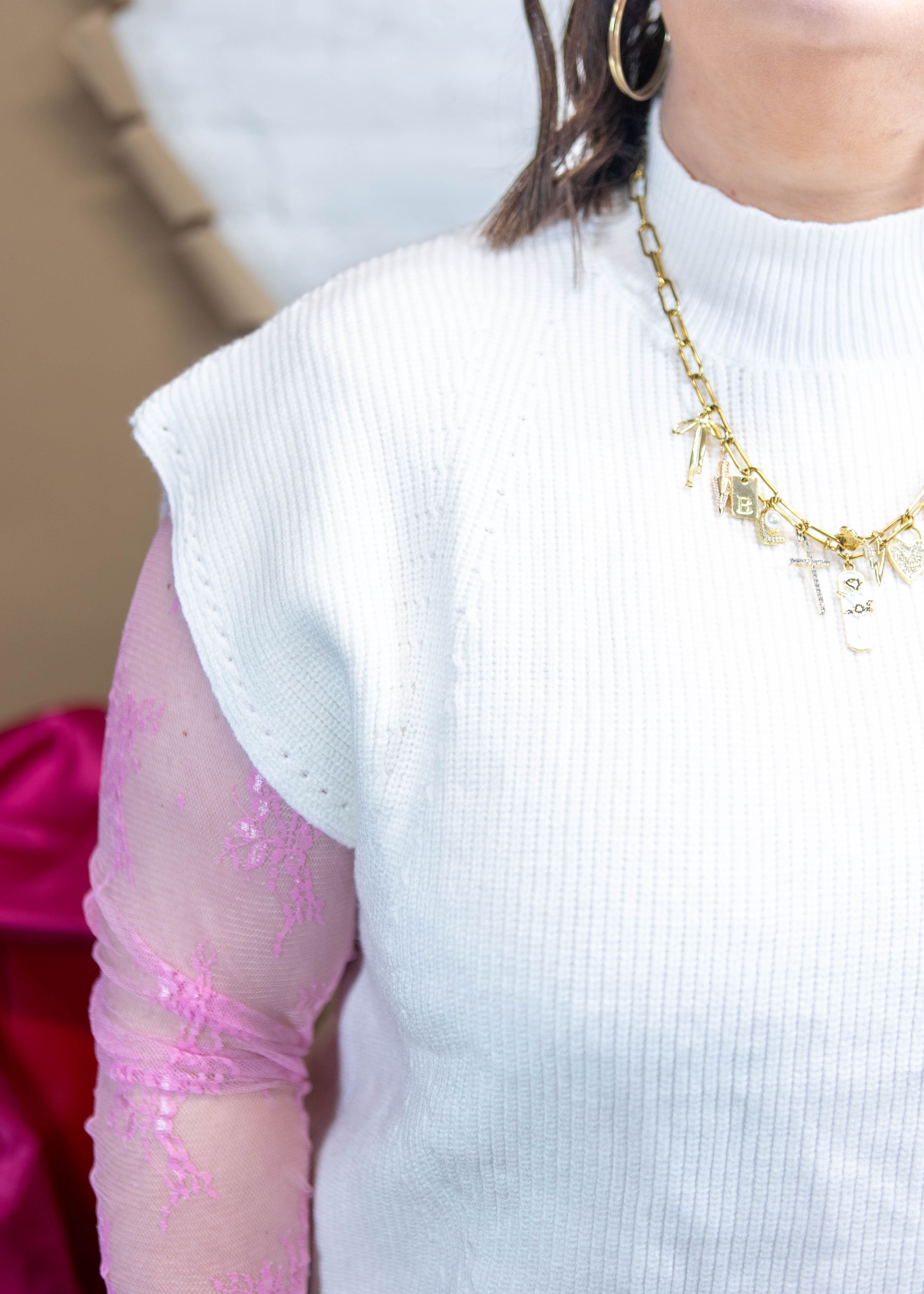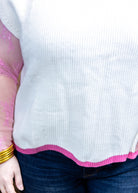 Stay stylish and comfortable with the All A Dream Sweater. This knit cap sleeve sweater vest features a classic white color with a subtle pop of pink on the hem. Perfect for any occasion, this sweater is a must-have addition to your wardrobe.