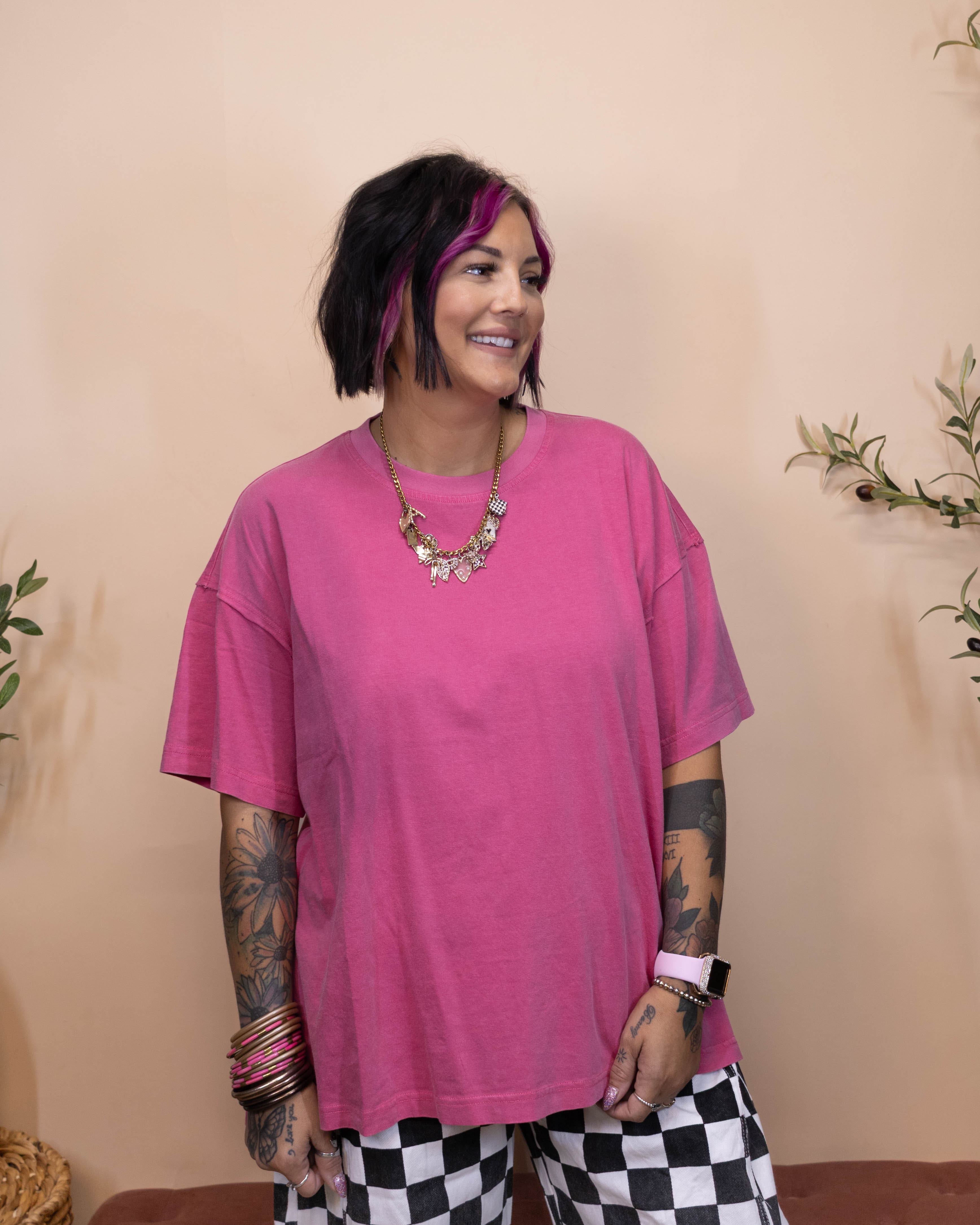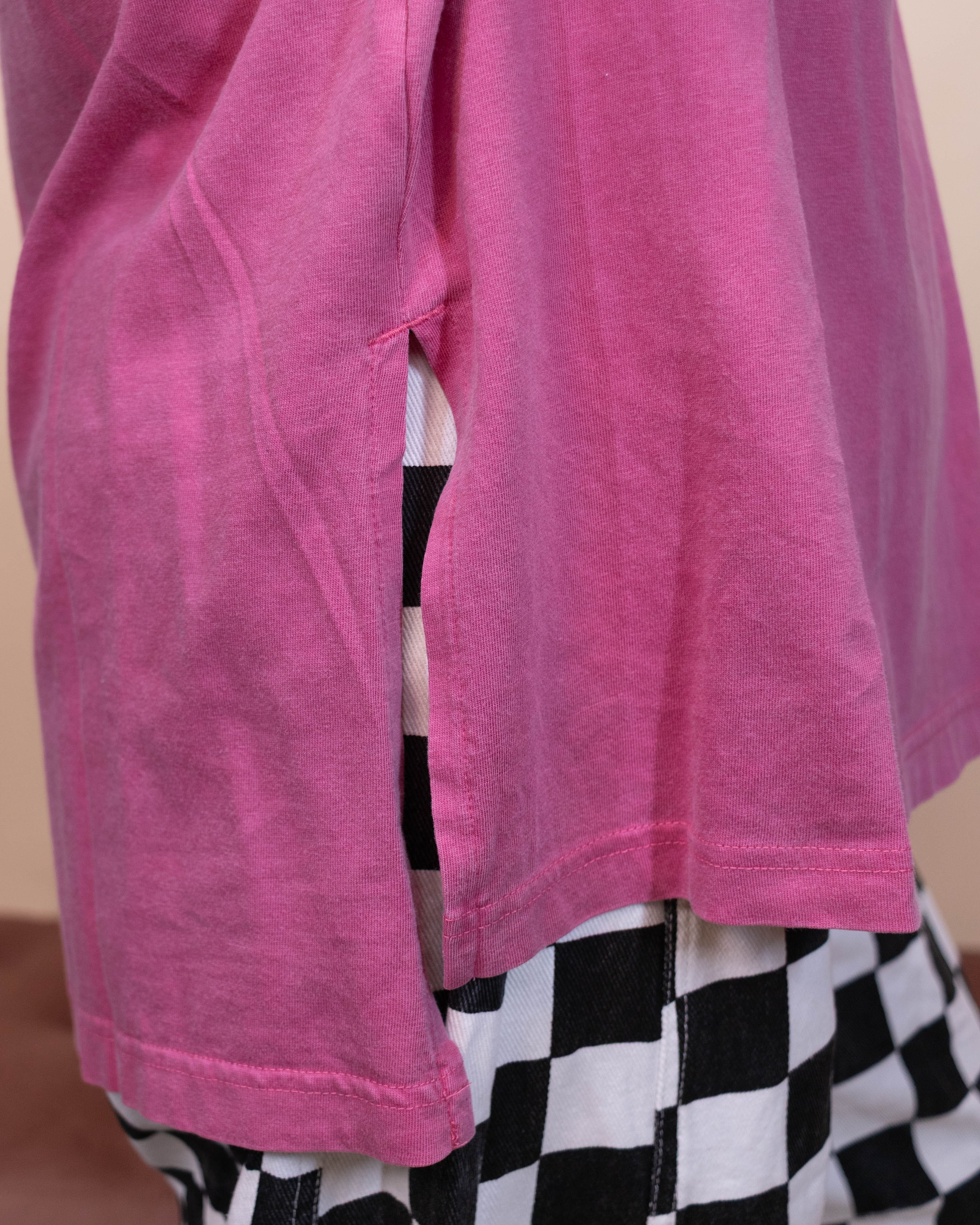 The All For Us Top in French Pink is a versatile basic with a stylish side slit and a comfortable crew neck. Its longer back adds a modern touch, making it easy to style for any occasion while keeping you comfortable all day long.
