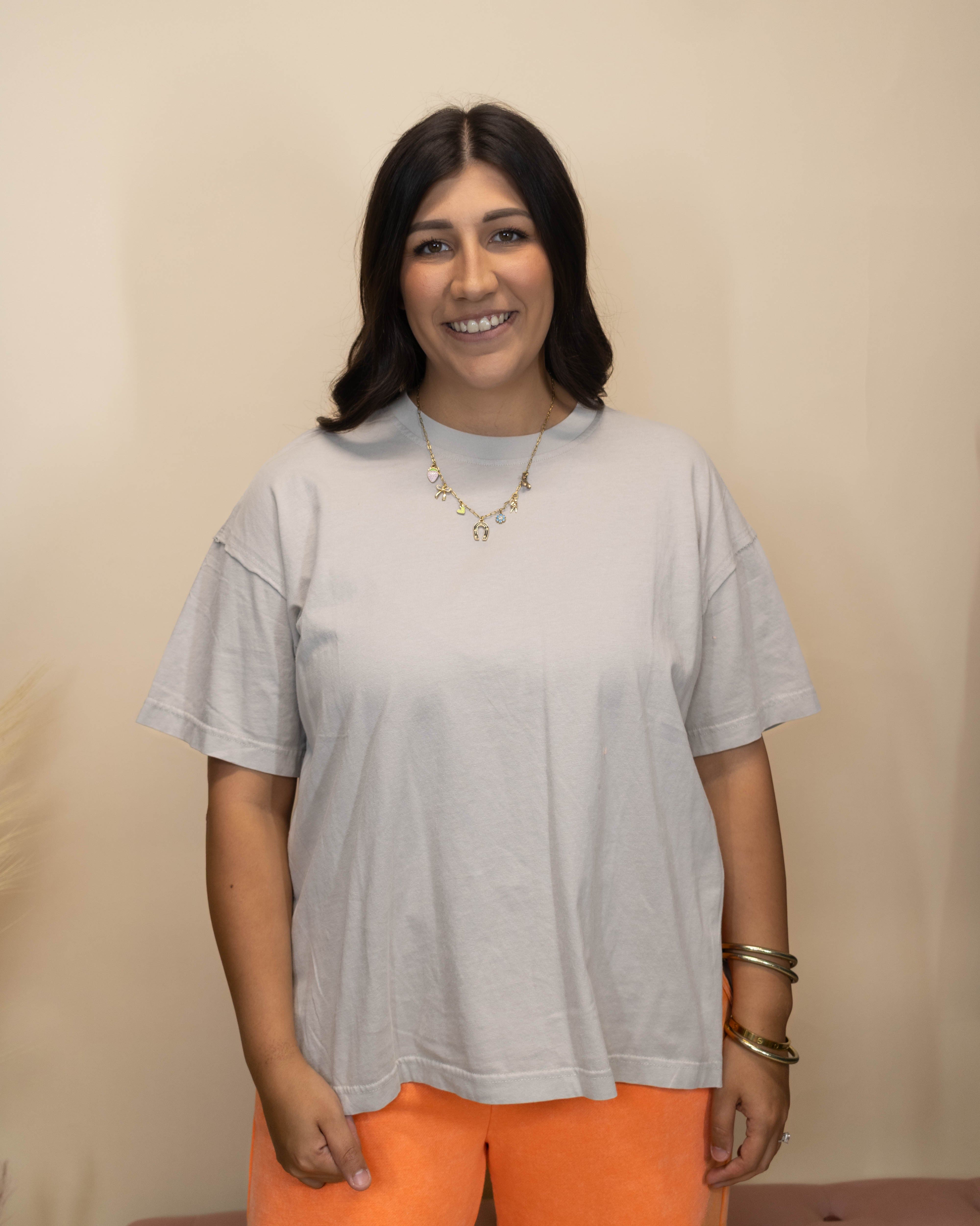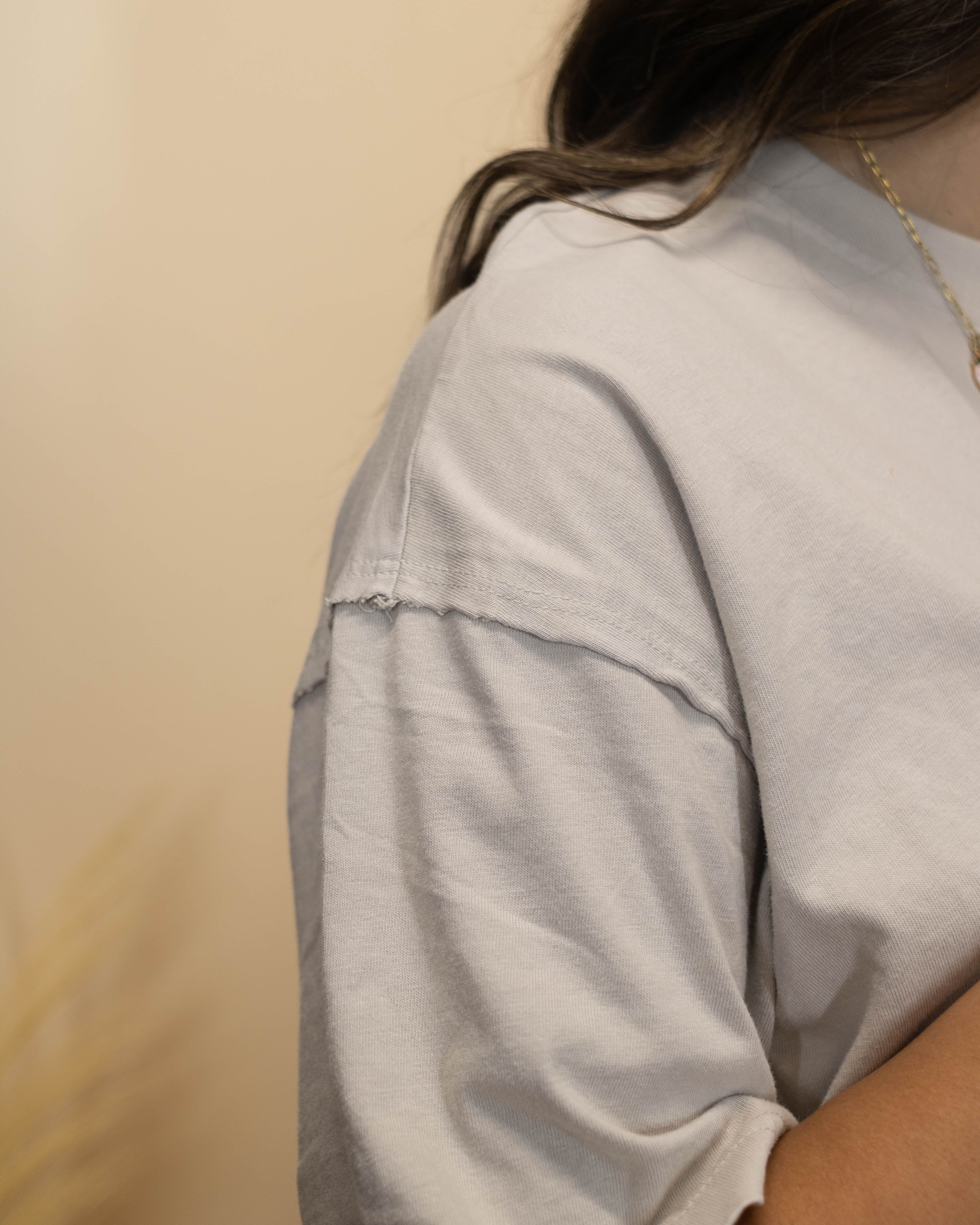 The All For Us Top in light taupe is crafted from soft material for all-day comfort. Featuring a classic crewneck and a small side slit, it offers subtle style details. With a slightly longer back, this great basic easily pairs with any outfit for effortless, versatile wear.