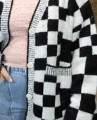 Get ready to elevate your wardrobe with our Check This Out Sweater Cardigan! This sleek and stylish piece features a timeless black and white checkered pattern, adding a touch of sophistication to any outfit. Stay warm and chic with this must-have sweater cardigan.