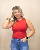 We have a cropped version of this tank that has been a best seller in store for a while now, but many of you ladies wanted the same great fabric and wide straps with a little more length and we are so excited that it is finally here! This will be great under tops, worn with skirts, shorts, etc. They are a great smooth and stretchy material that we LOVE because of how versatile they are and how great they are to layer with. The wide straps are really nice to hide bra straps, and the length is perfect for someone who doesn't want to show too much skin!