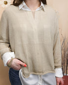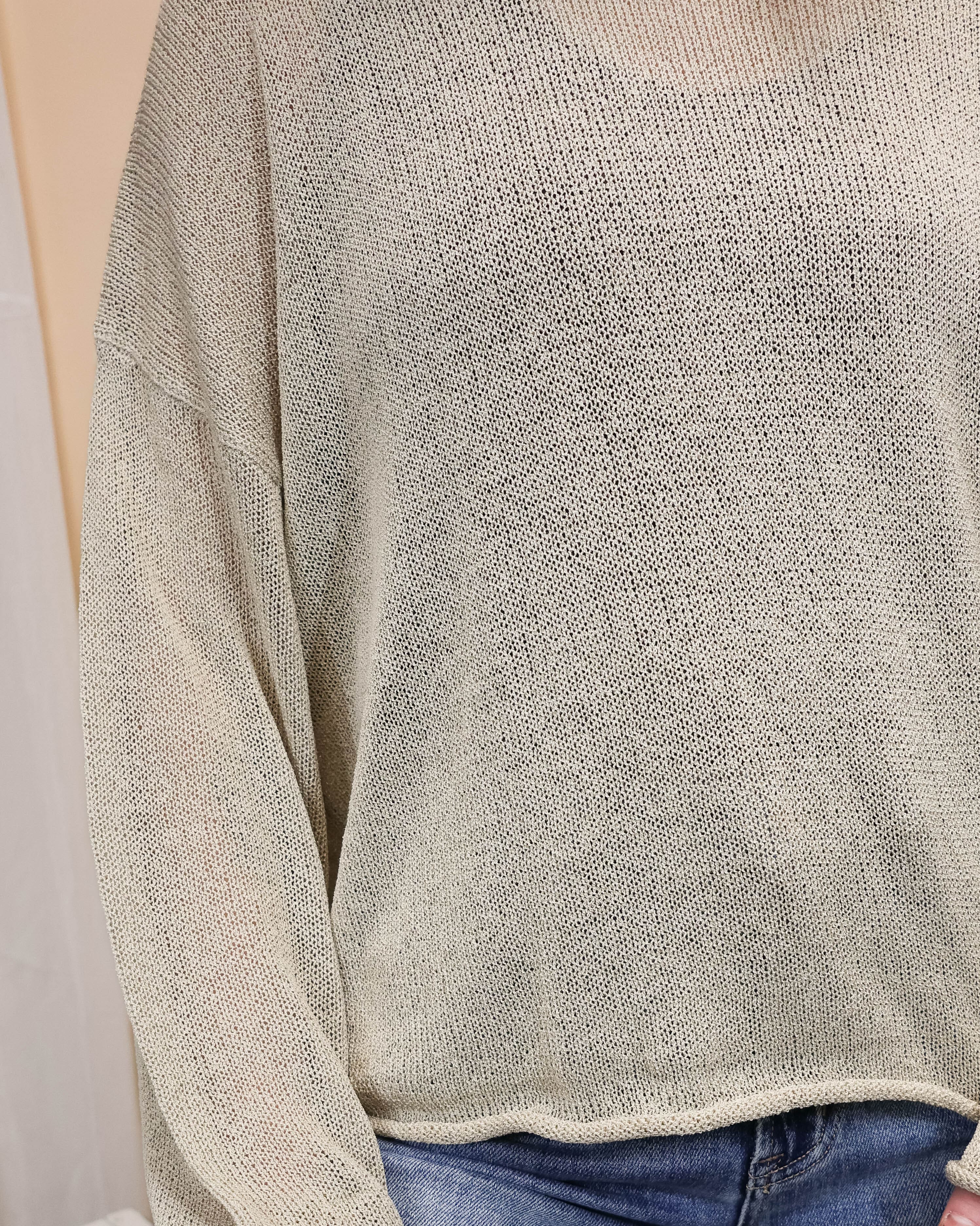 Lightweight and versatile, this sheer knit top is your go-to layer for spring's unpredictable weather. The neutral tone pairs effortlessly with any outfit, while the delicate fabric provides just enough warmth for chilly days without bulk. Perfect for layering or wearing solo, it's the everyday essential that works with everything in your closet.
