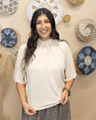 Effortlessly elevate your everyday wardrobe with the Just A Chance Top, a lightweight blouse designed for comfort and versatility. Featuring quarter sleeves that offer the perfect balance between coverage and breathability, this piece transitions seamlessly from season to season. The soft, off-white cream tone complements any complexion and pairs beautifully with your existing basics. Whether you're dressing up for the office or keeping it casual, this blouse delivers understated elegance without the weight. A wardrobe essential that works as hard as you do.