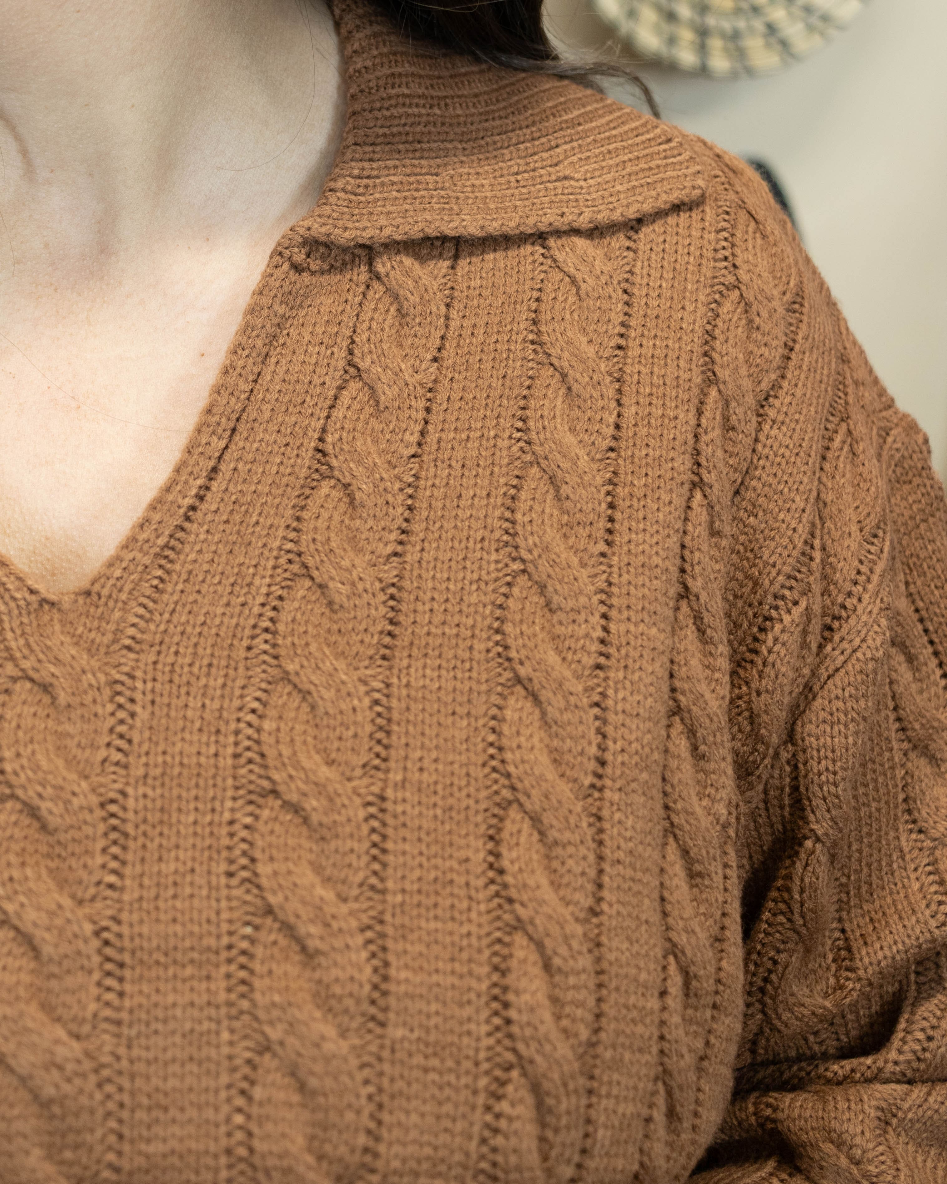 Elevate your everyday wardrobe with the Know It's So Sweater, a sophisticated brown knit that combines timeless style with modern appeal. Featuring a classic collared top and flattering V-neckline, this piece offers versatile layering potential for any season. The intricate knit detailing adds visual interest and texture, making it a standout choice whether you're dressing up for the office or keeping it casual on the weekend. Comfortable, chic, and endlessly wearable—this sweater is the wardrobe essential you've been waiting for.