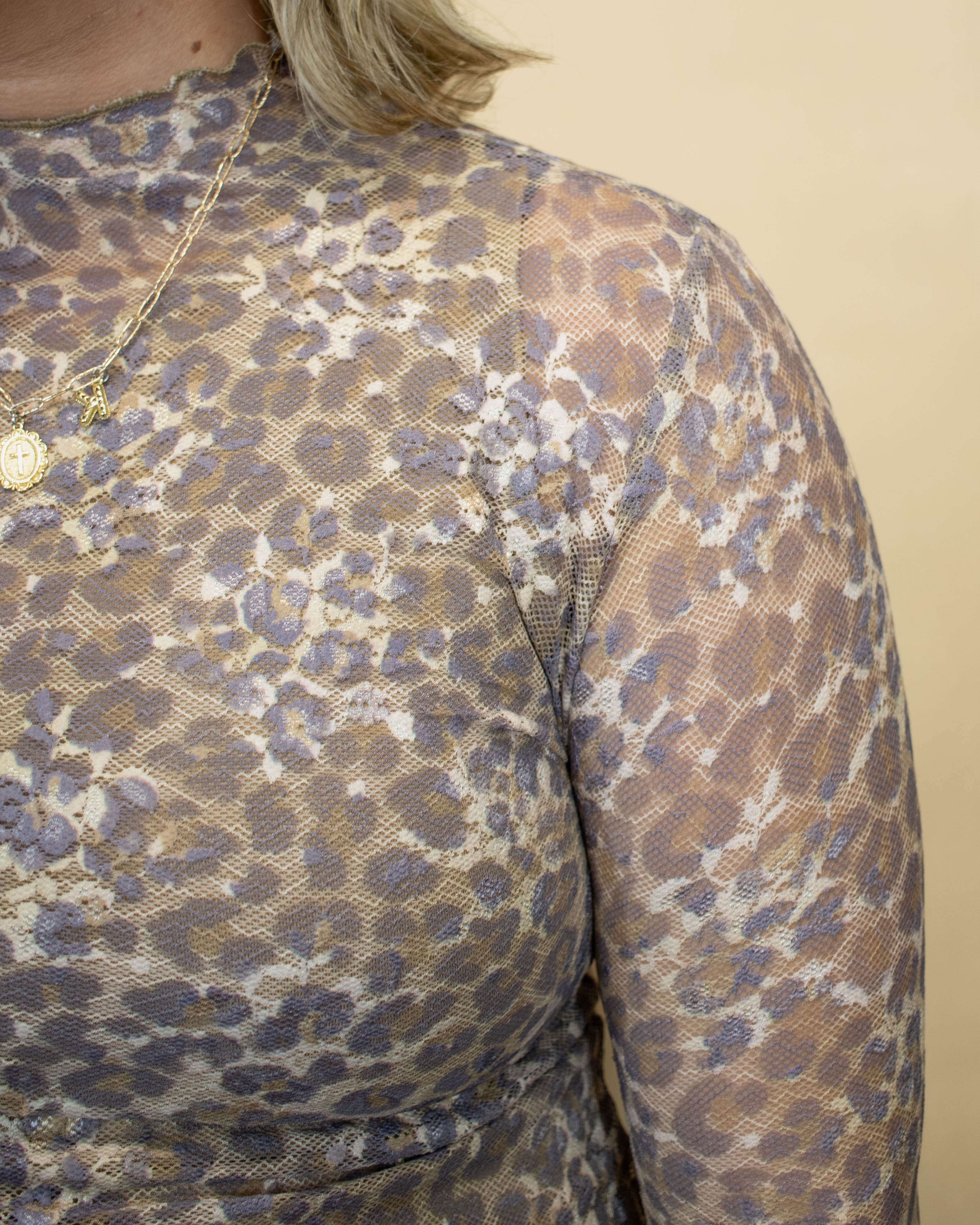 Elevate your outfit with the Lend To Me Mesh Top, featuring a perfect layering design that adds a chic touch to any look. Its breathable mesh fabric offers comfort and style, while the subtle cheetah pattern brings a bold, trendy edge. Ideal for pairing over your favorite pieces, this top effortlessly enhances your wardrobe with a unique blend of flair and versatility. Make a statement with every layer.