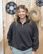 Slip into effortless comfort with this charming ash grey quarter zip pullover. Crafted from soft, breathable fabric that feels as good as it looks, it's the perfect layering piece for casual days and cozy nights. The relaxed fit and gentle quarter zip design make it easy to adjust your warmth on the fly. Whether you're running errands or settling in at home, this pullover delivers that coveted "just right" feeling—cute enough to style with anything, comfortable enough to live in.