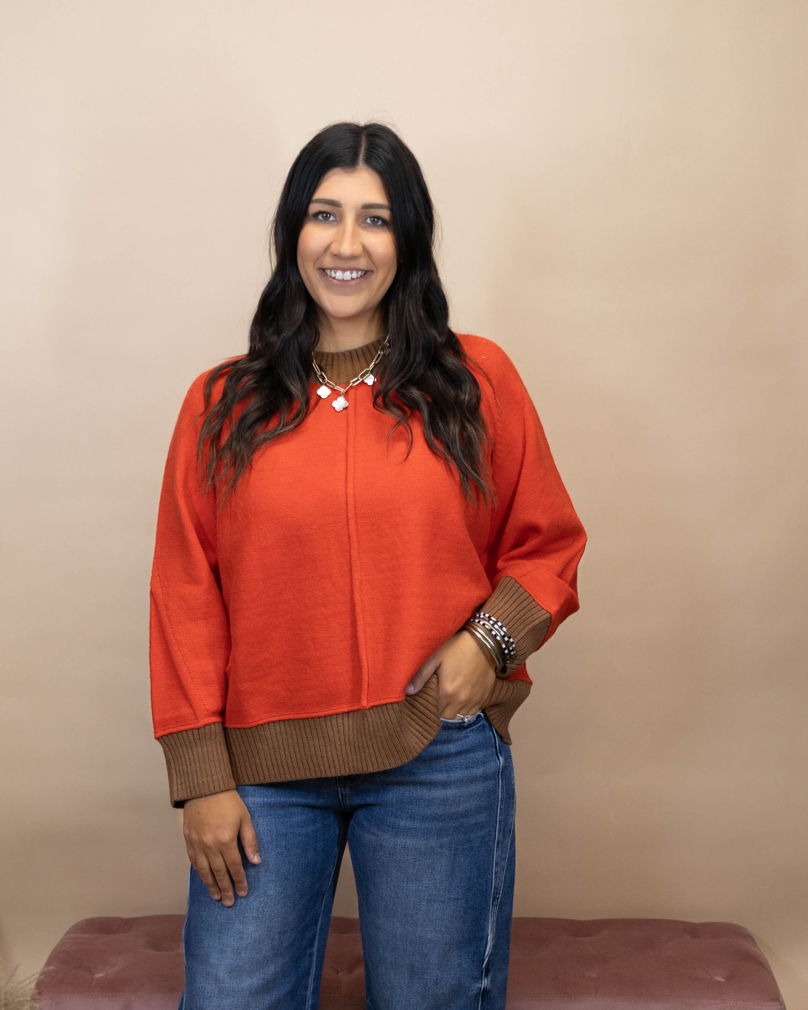 Embrace warmth and style with the Light of Day Sweater. This long-sleeve sweater features a vibrant orange base accented by subtle brown details, perfectly blending bold color with elegant contrast. Its cozy fabric ensures comfort throughout the day, making it ideal for both casual outings and relaxed evenings. Elevate your wardrobe with a piece that combines striking design and practical comfort effortlessly.