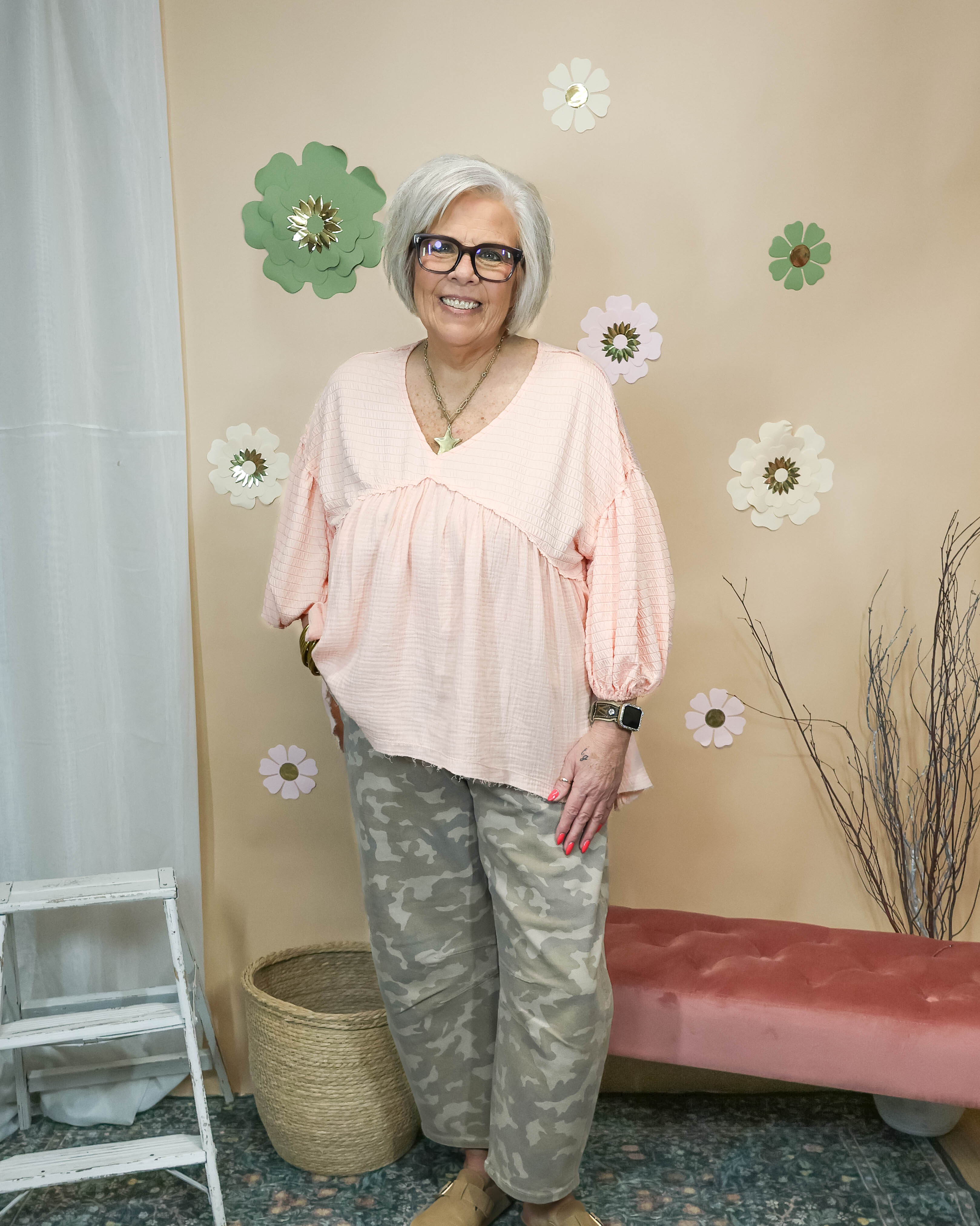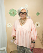 This peach babydoll top is the definition of versatile charm. The bubble half sleeves add dimension and personality while the flattering fit works for casual hangouts or dressed-up occasions. Soft, stylish, and ready to become your go-to piece for any day of the week.