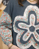 Discover the vibrant charm of the See The Fun Top, a striking blue shirt that celebrates creativity through its one-of-a-kind flower design. Crafted with an innovative blend of different fabrics, the dimensional flower motif adds texture and visual interest that sets this piece apart. Perfect for those who love bold, playful style with an artistic edge, this top transforms an everyday look into something memorable. Whether you're heading out for a casual day or want to make a statement, this unique garment brings personality and flair to your wardrobe.