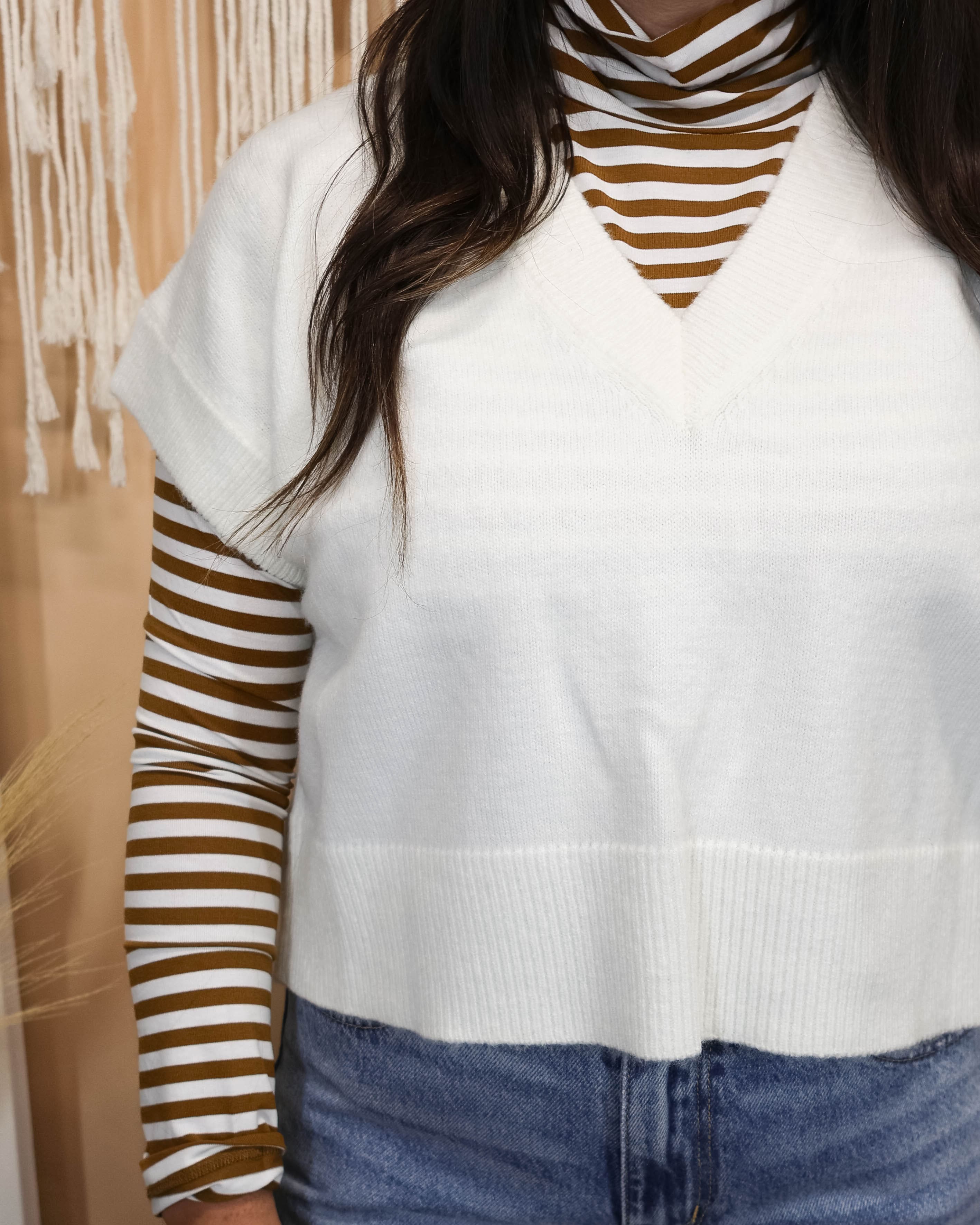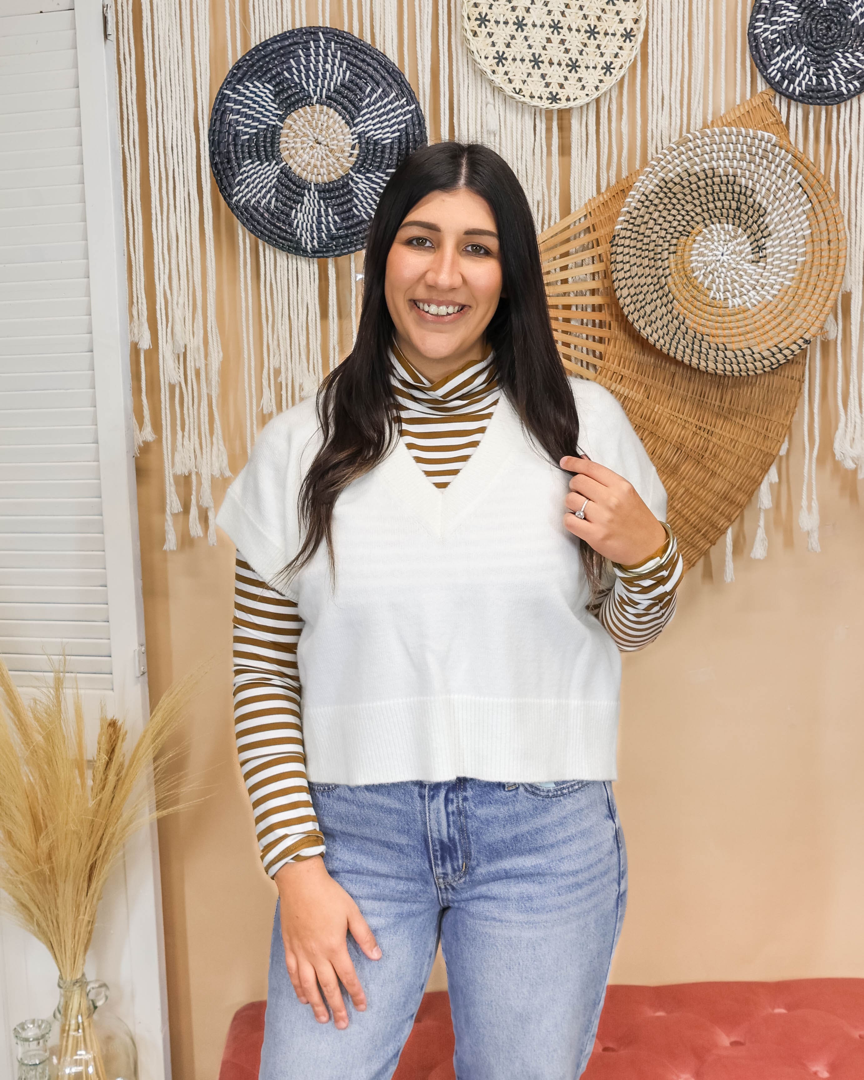 Elevate your everyday wardrobe with this timeless cropped sweater vest featuring a flattering V-neckline. The cream colorway pairs effortlessly with any outfit—layer it over your favorite tee, button-up, or dress for instant sophistication. Perfect for transitional seasons or year-round layering, this versatile piece adds dimension and polish to casual and polished looks alike. A wardrobe essential that works as hard as you do.