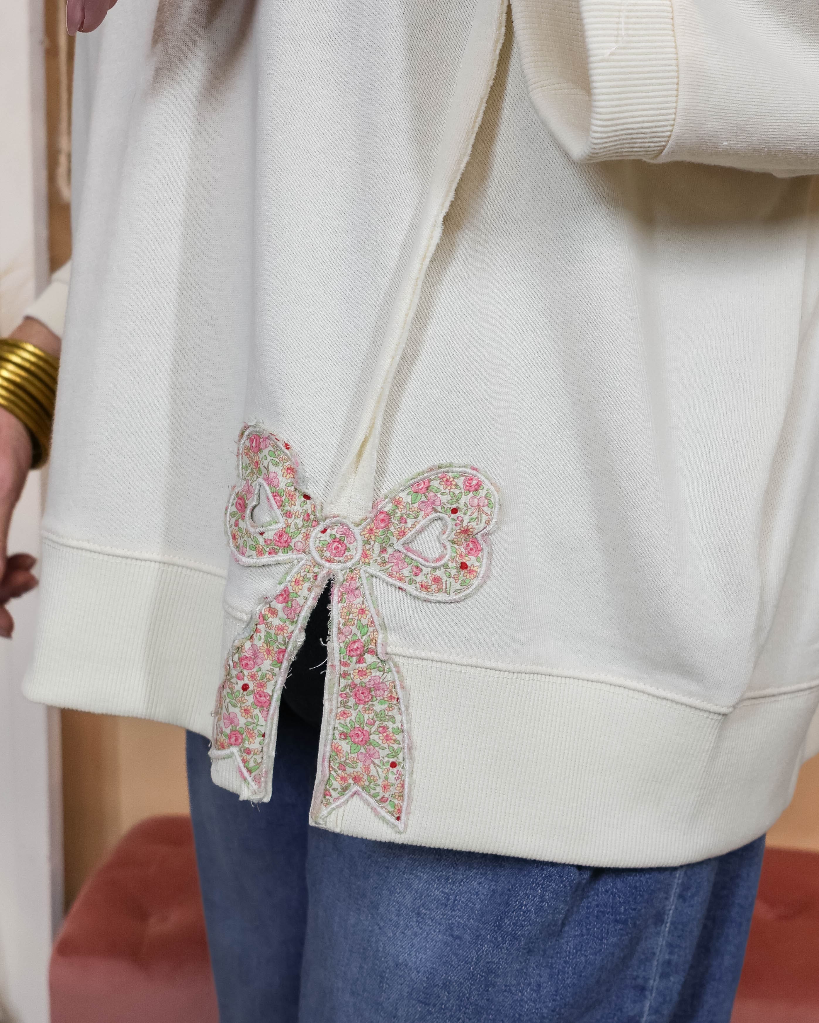 This pullover sweatshirt is literally tied together with cuteness—complete with an adorable bow detail that adds instant personality. Soft, cozy, and unapologetically girly, it's the kind of piece that makes you smile every time you put it on. Perfect for casual days when you want to feel fun and fabulous without any effort.