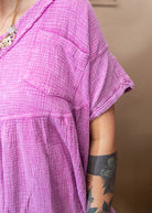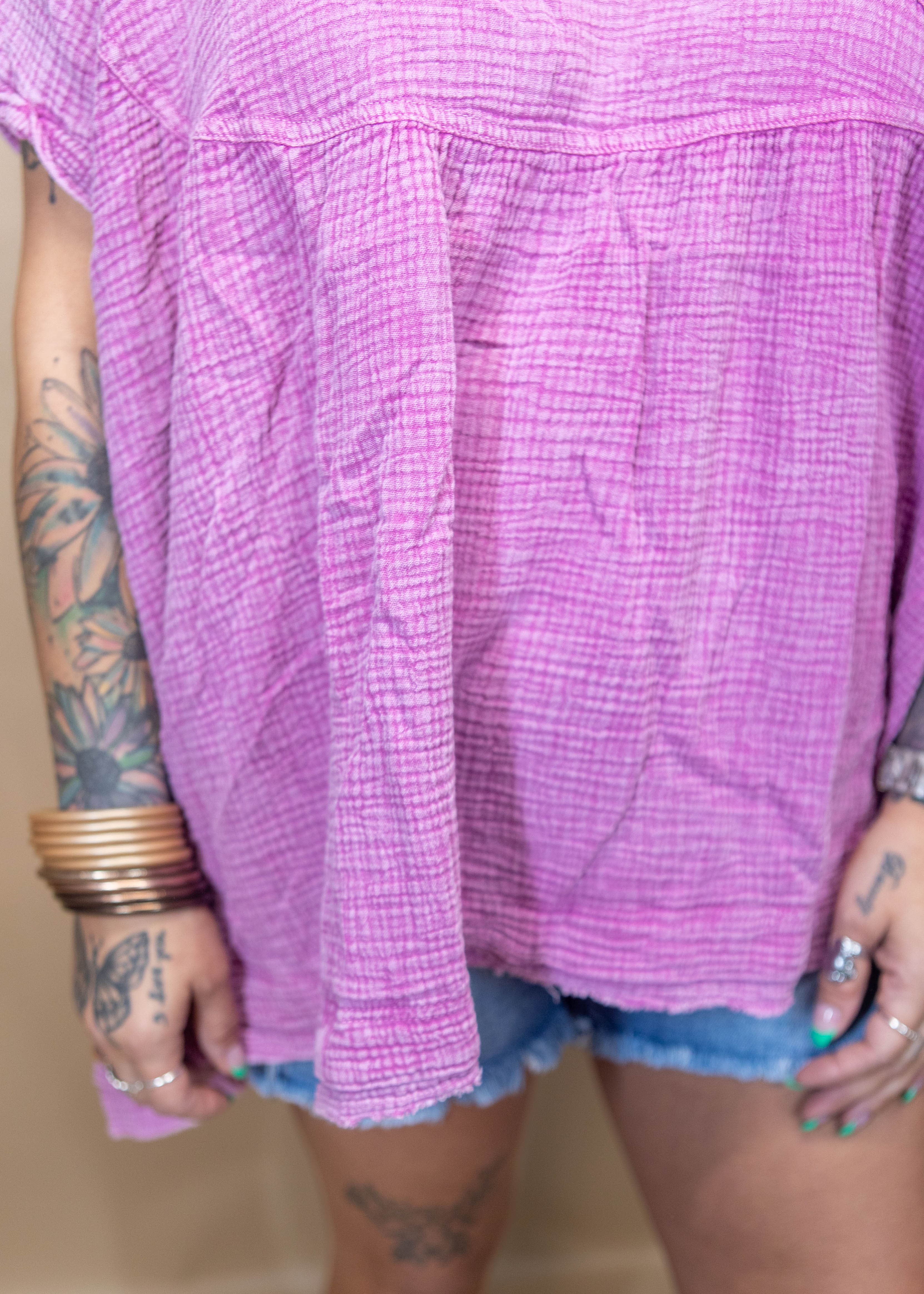 Step into style with the Time Goes By Top! Crafted from airy gauze material, this top features a playful longer back and a small side slit. Perfect for adding a touch of fun to any outfit.