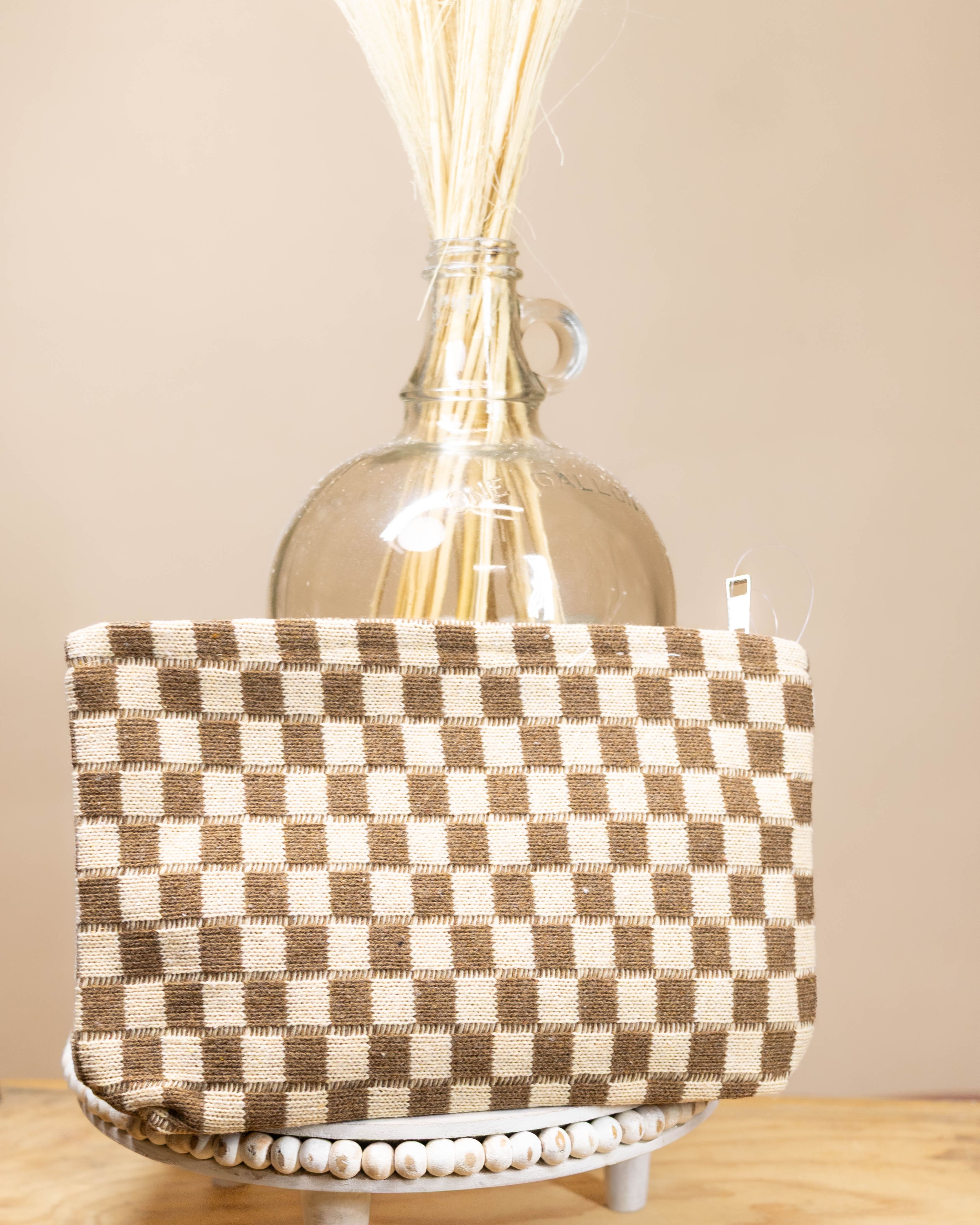 Large Checker Makeup Cosmetic Pouch- Khaki