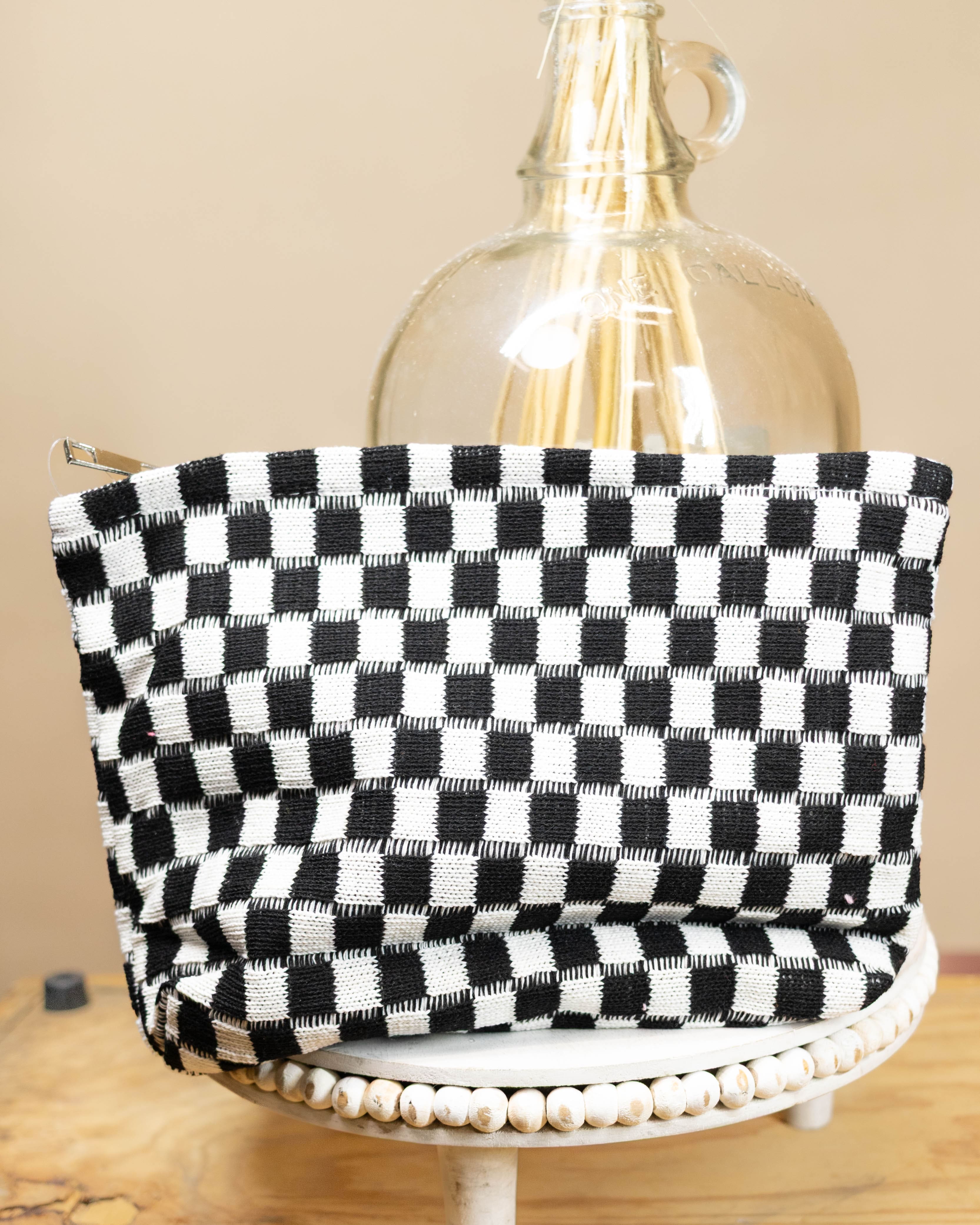 Large Checker Makeup Cosmetic Pouch- Black