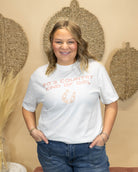 Step back into timeless style with this classic white tee featuring charming pink lettering. The 90's Country Graphic Tee blends simplicity with a pop of color, making it an effortless addition to your casual wardrobe. Perfect for layering or wearing solo, it offers both comfort and a touch of nostalgic flair to brighten your everyday look.