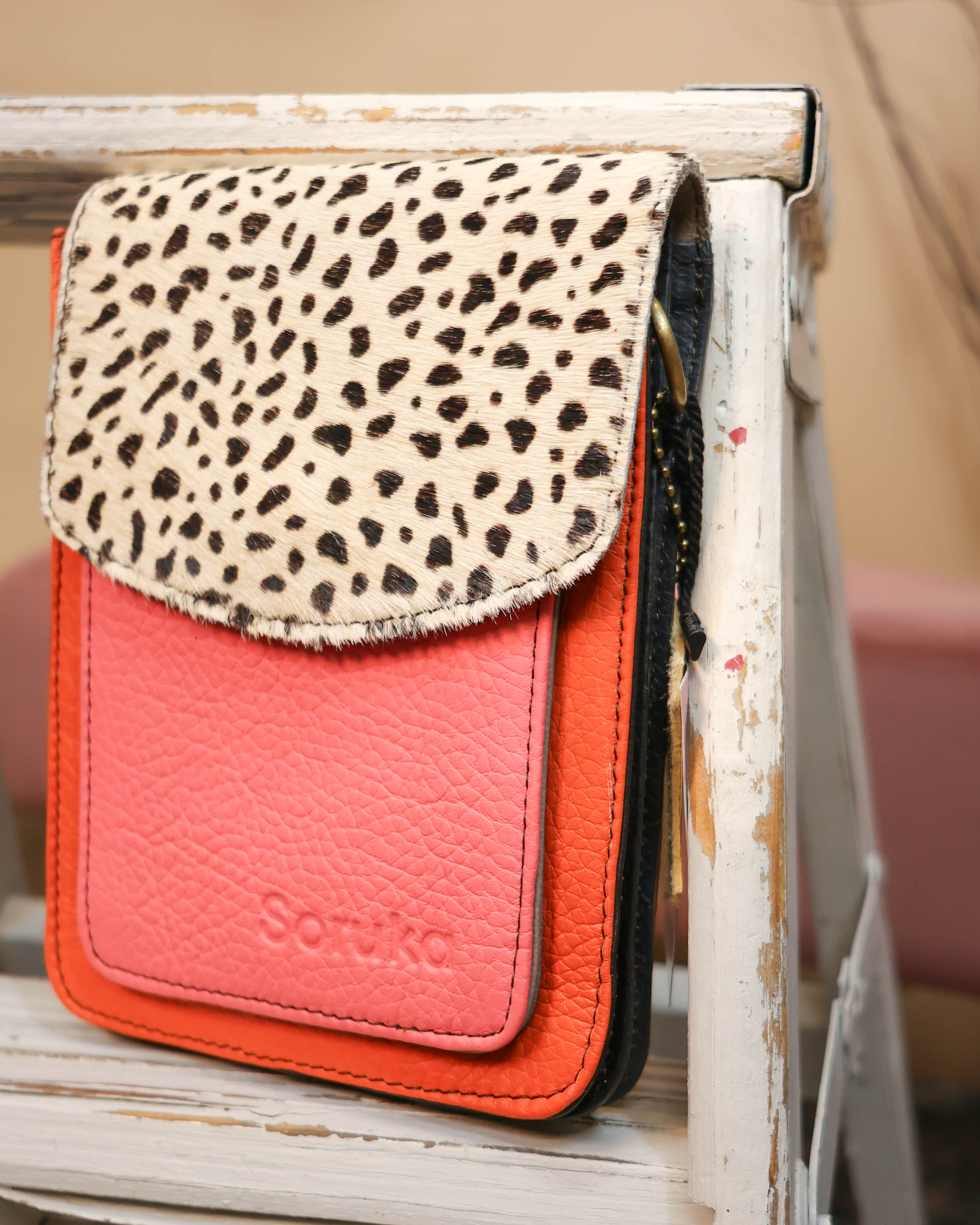 The Aiko Crossbody Bag is your pocket-sized sidekick for all things fun. This small, sleek bag keeps your phone and essentials snug and secure with an adjustable strap that moves with you. Bold animal print splashed across the flap? Check. Eco-friendly recycled leather that feels as good as it looks? Double check. Slip it on and go—because the best adventures don't require much baggage.