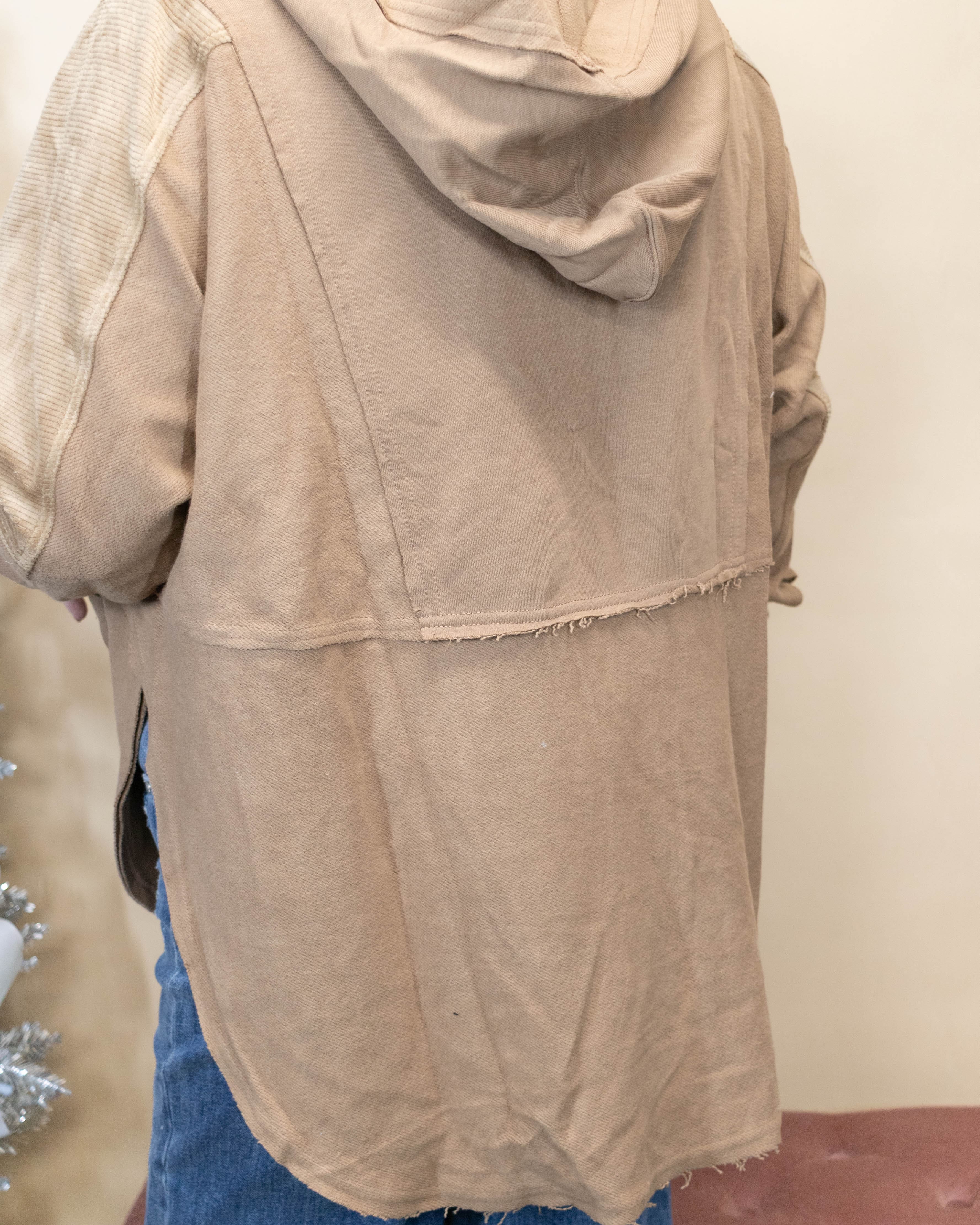 Elevate your everyday style with this versatile pullover that effortlessly blends comfort and sophistication. Featuring a convenient quarter-button closure at the neckline, practical side pockets for functionality, and luxurious velvet stripes adorning the sleeves, this light brown sweater shirt is designed for those who refuse to compromise on details. The rich, neutral tone pairs seamlessly with any wardrobe, while the textured velvet accents add an unexpected touch of elegance. Perfect for layering or wearing solo, this piece transitions beautifully from casual days to relaxed evenings.