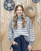 Timeless elegance meets everyday comfort in this essential sweater. Crafted in a sophisticated black and grey palette, its clean lines and minimalist design work seamlessly with any wardrobe. The stripped pattern adds subtle visual interest without overwhelming your look, while the quality construction ensures lasting wear. Perfect for layering or wearing solo, this versatile piece transitions effortlessly from casual days to polished evenings. Invest in a sweater that never goes out of style.