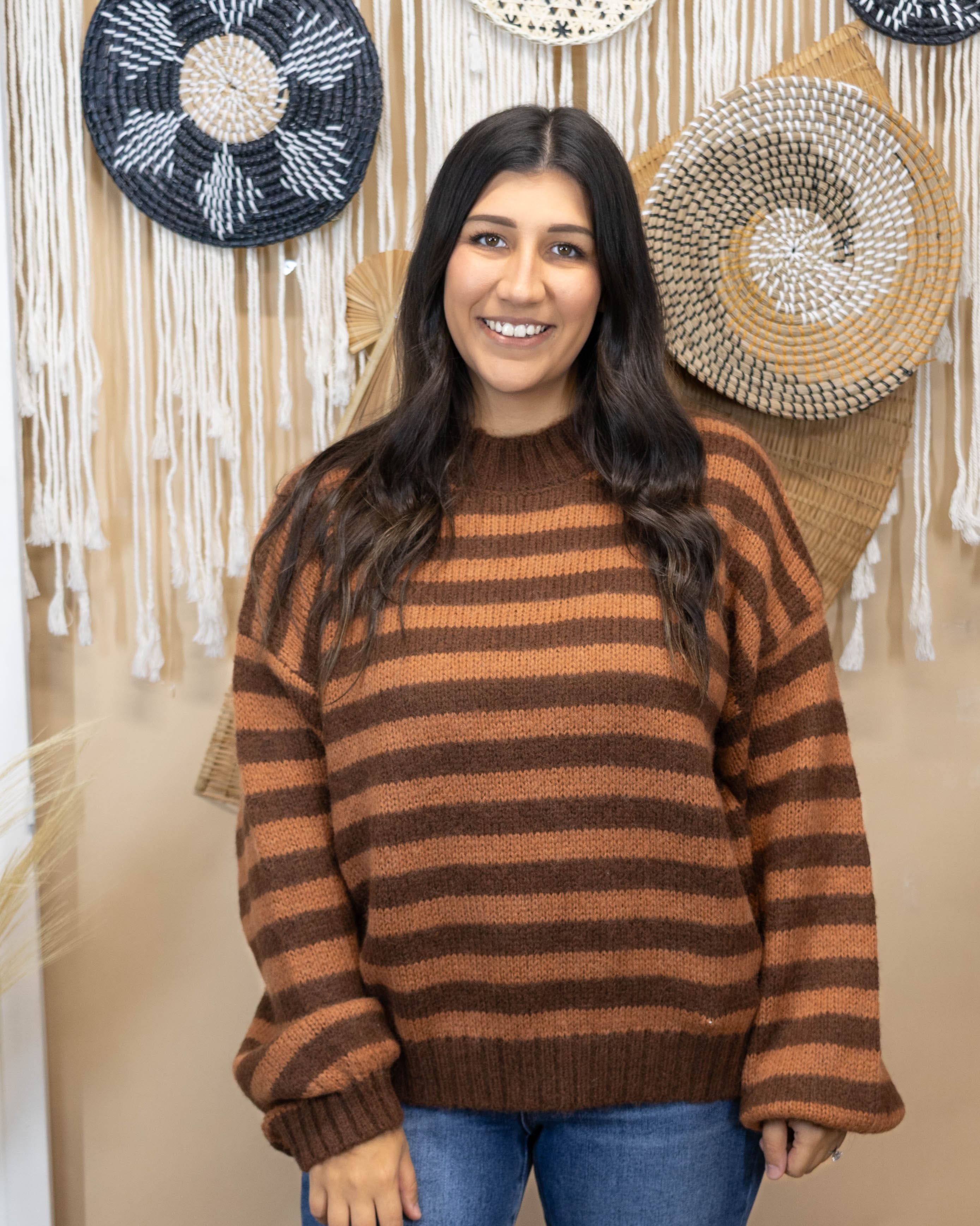 Elevate your everyday wardrobe with the Before We Go Sweater, a timeless piece that effortlessly blends comfort and style. Featuring warm orange and brown tones with classic stripes, this long-sleeve sweater works beautifully for casual outings or layered looks. The relaxed fit and quality construction make it a reliable go-to for cooler days, while the neutral color palette pairs seamlessly with your existing pieces. Perfect for anyone seeking a versatile staple that delivers both warmth and understated sophistication.
