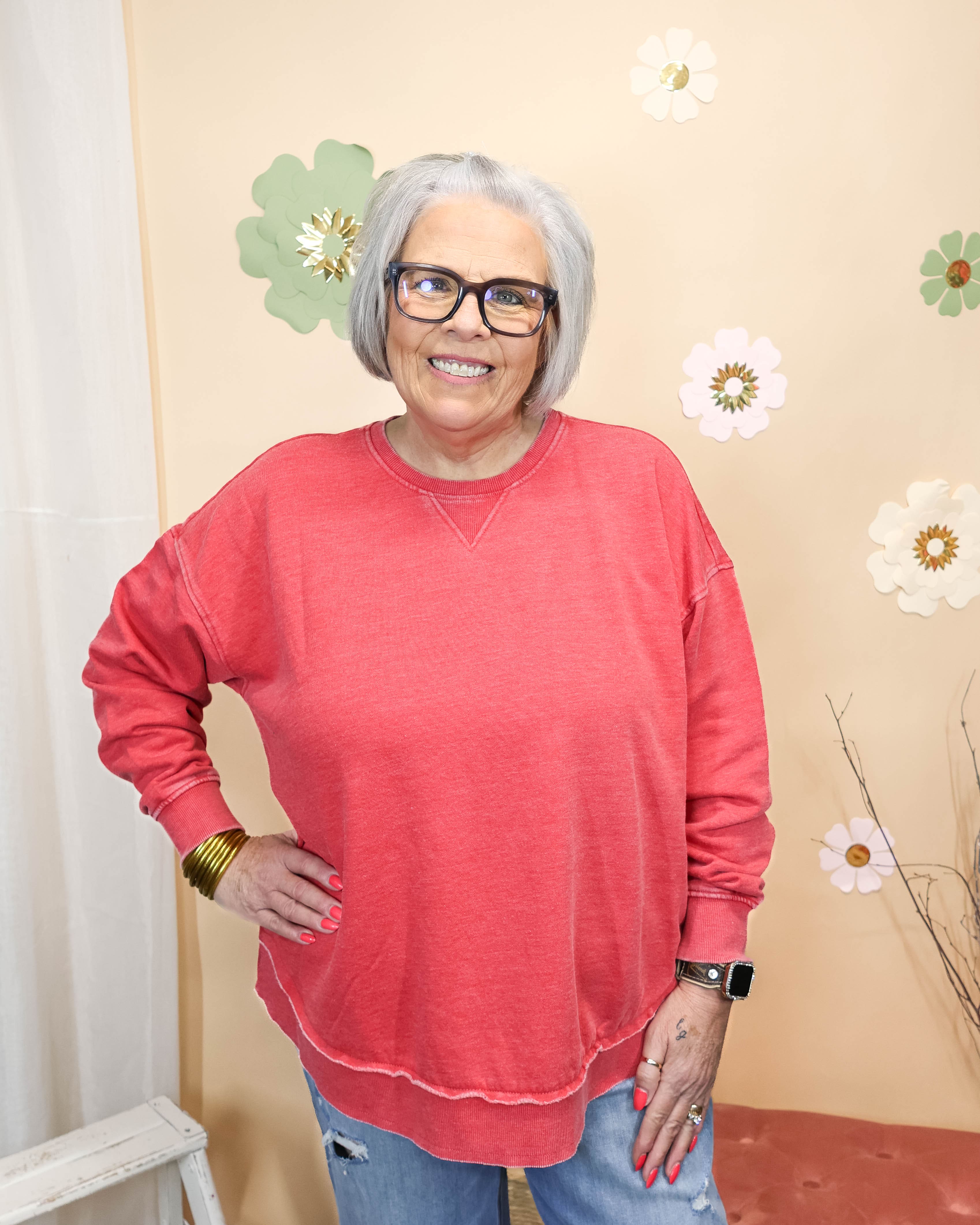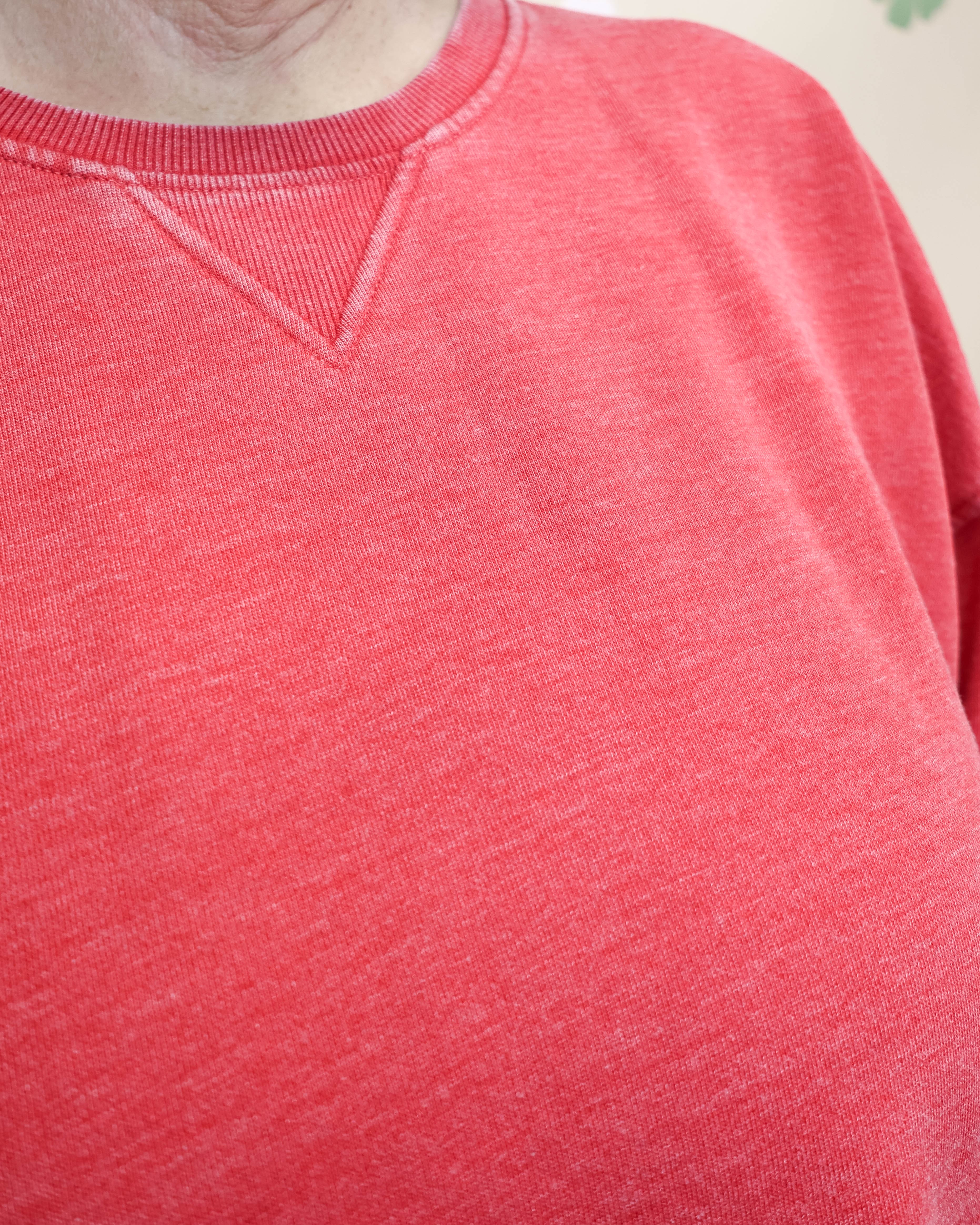 This red burnout pullover delivers laid-back comfort with its soft crew neck and artfully worn-in finish. Perfect for layering through spring's temperature swings, the relaxed fit moves with you from casual coffee runs to weekend hangouts. The vintage burnout texture adds character while maintaining that effortless, understated vibe. Throw it on over a tee or wear solo for a cozy, no-fuss essential.
