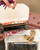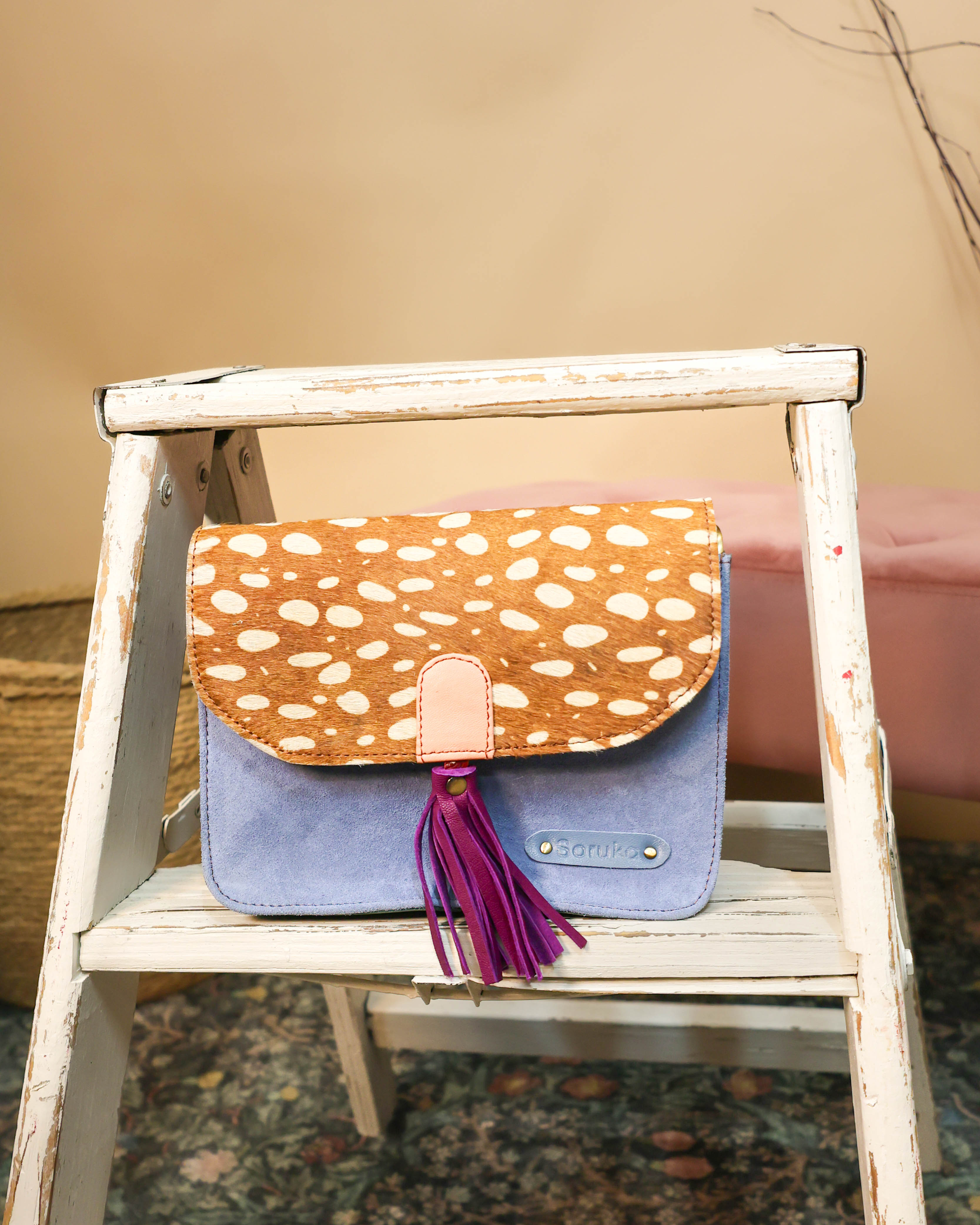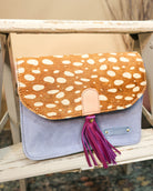 Meet your new favorite accessory—the Claire Crossbody Bag, where no two are exactly the same. This petite suede leather stunner features three compartments to keep your daily essentials sorted, plus a hidden zipper pocket for those items you want to keep close. A playful tassel adds a touch of flair, while the magnetic closure snaps shut with satisfying ease. Sling it across your body and go—lightweight, organized, and totally one-of-a-kind.