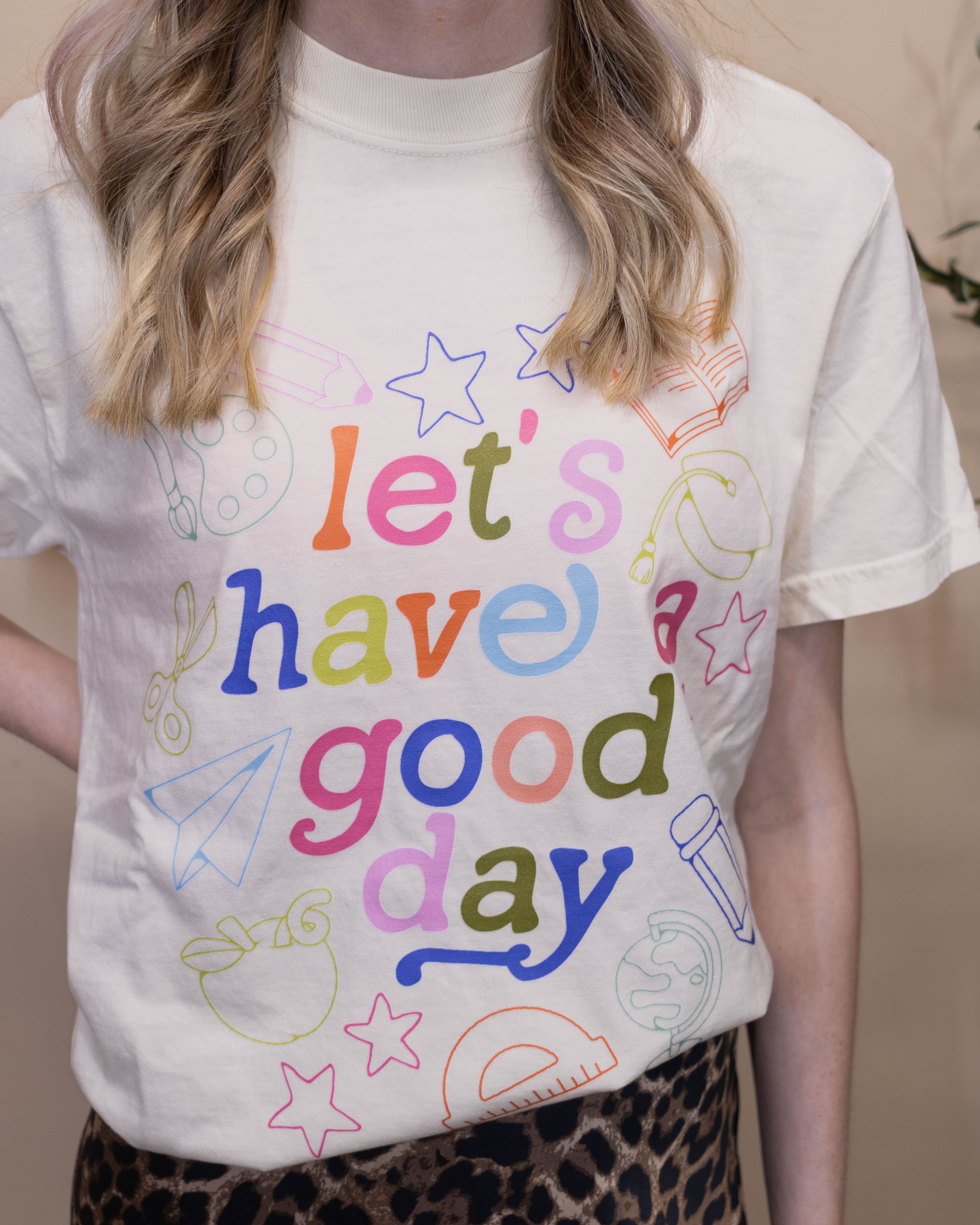 This ivory graphic tee is perfect for any teacher. With its fun and colorful design, it's sure to brighten up any classroom. Made with high-quality material, it's comfortable and durable for daily wear. Show off your love for teaching with style and confidence.