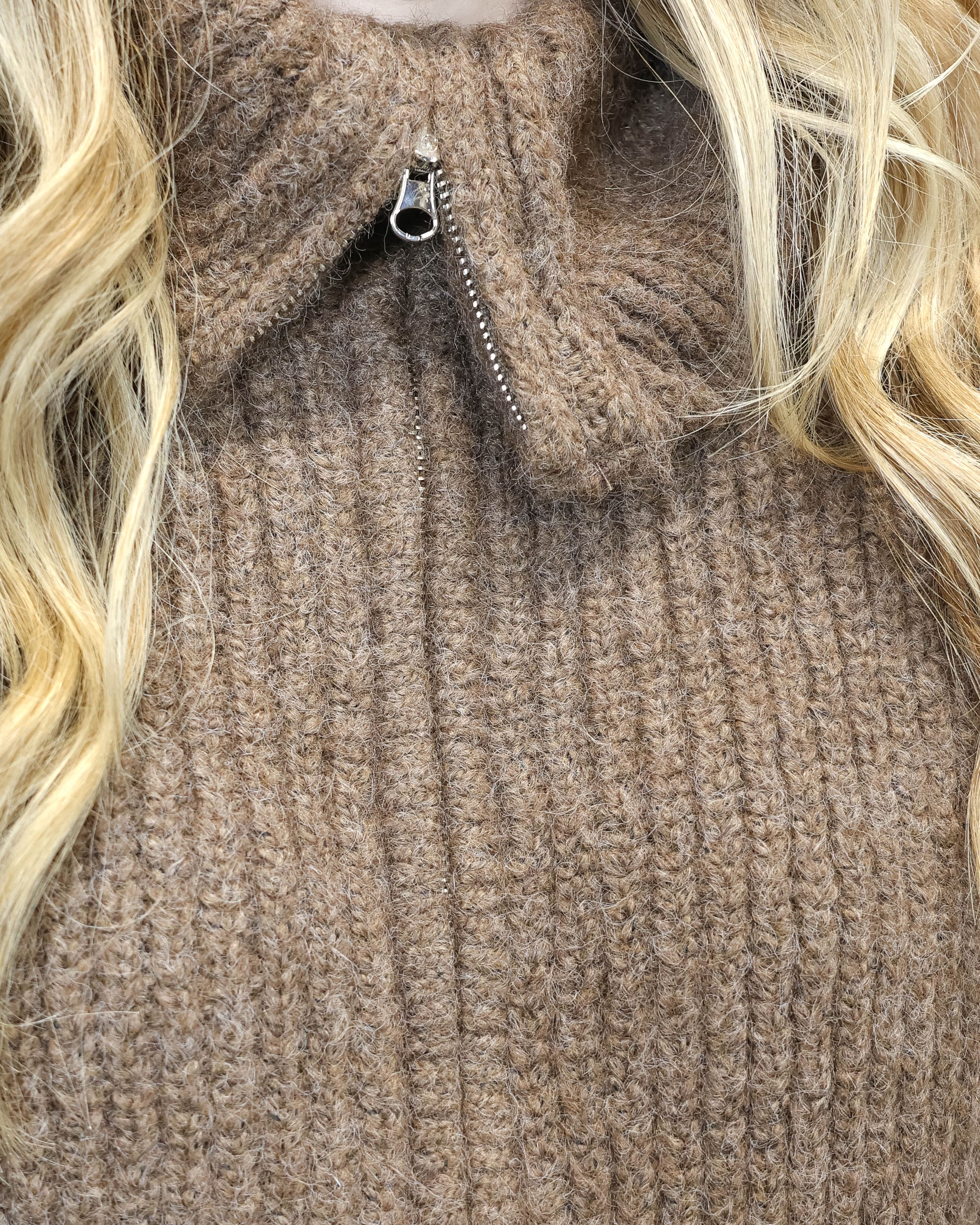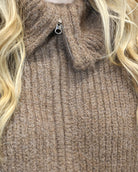 Cozy up in effortless style with this charming brown pullover, featuring a classic collared neckline and convenient front zipper for easy layering. Perfect for transitional weather, this versatile piece pairs beautifully with everything from casual jeans to polished trousers. The soft, inviting brown tone complements any wardrobe while the structured collar adds a touch of refined sophistication. Whether you're heading to the office or out for weekend adventures, this sweater delivers comfort without compromising on charm. A wardrobe essential that works as hard as you do.
