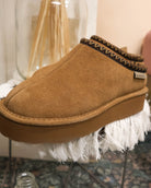 Step into comfort and style with the Martis Clog, a platform shoe that combines cozy fur lining with contemporary design. The slip-on silhouette makes getting ready effortless, while trendy stitching details around the ankle add visual interest. Crafted in a rich cognac tone, this versatile clog transitions seamlessly from casual outings to relaxed workdays. The plush interior keeps your feet warm and cushioned, making it an ideal choice for anyone seeking both fashion-forward flair and all-day wearability.
