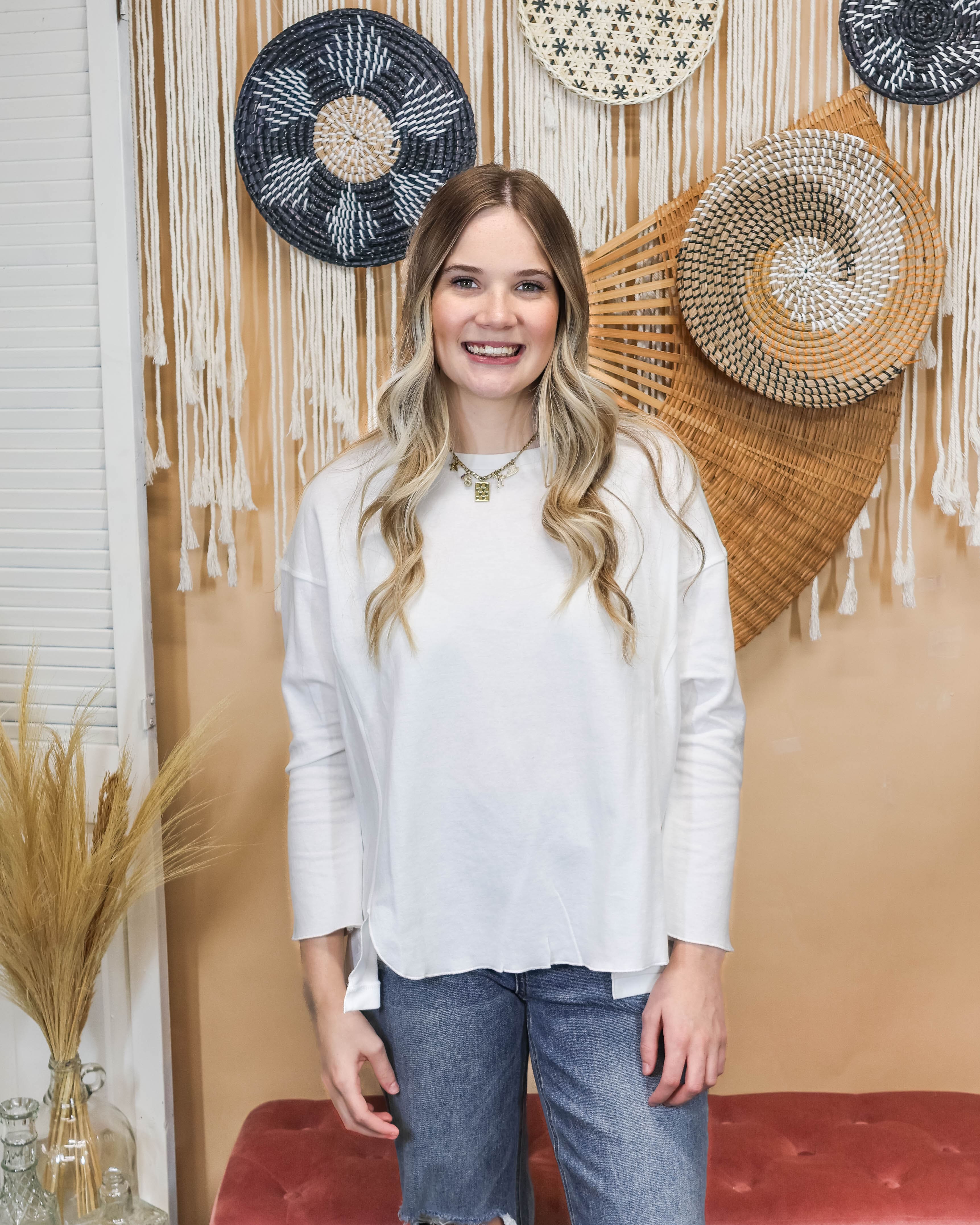 The Not This Time Top is your go-to white long sleeve for effortless versatility. Layer it under dresses, jackets, or cardigans for added depth, or wear it solo as a clean, polished staple. Its timeless design makes it the perfect transition piece that works across seasons and styles, adapting to whatever your day demands.