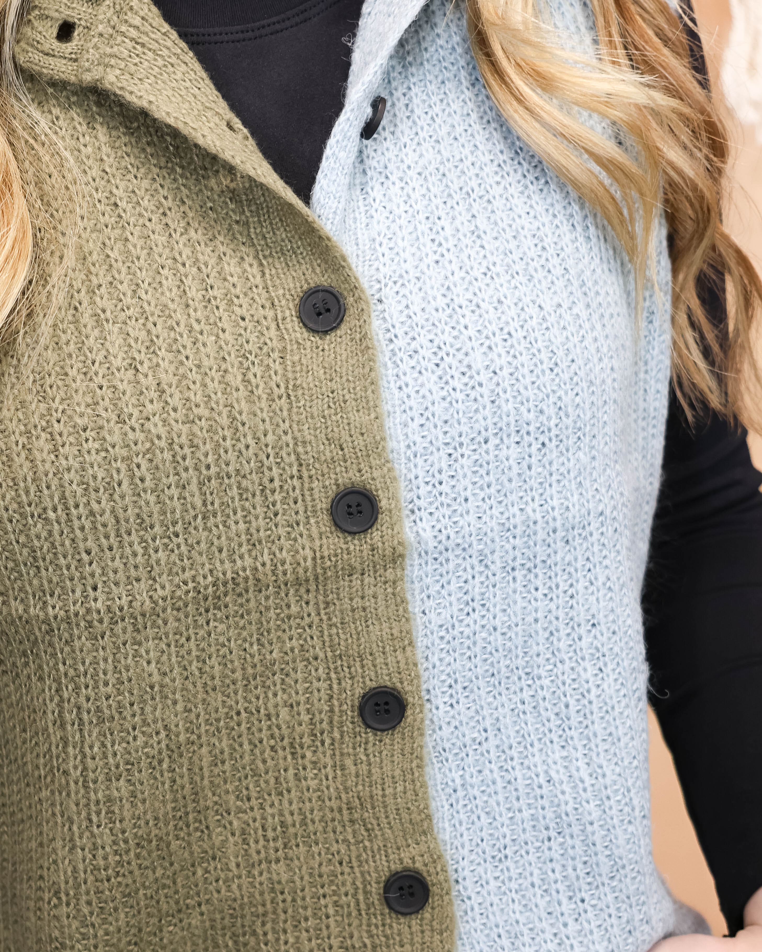 Layer effortless style with this striking sweater vest, featuring a sophisticated blue and green color palette that elevates any outfit. The sleek black button front adds polished detail and practical versatility, making it perfect for pairing over your favorite tees or dress shirts. Whether you're heading to the office or out for casual adventures, this fashion-forward piece delivers timeless appeal with contemporary flair. A wardrobe essential that transitions seamlessly from season to season.