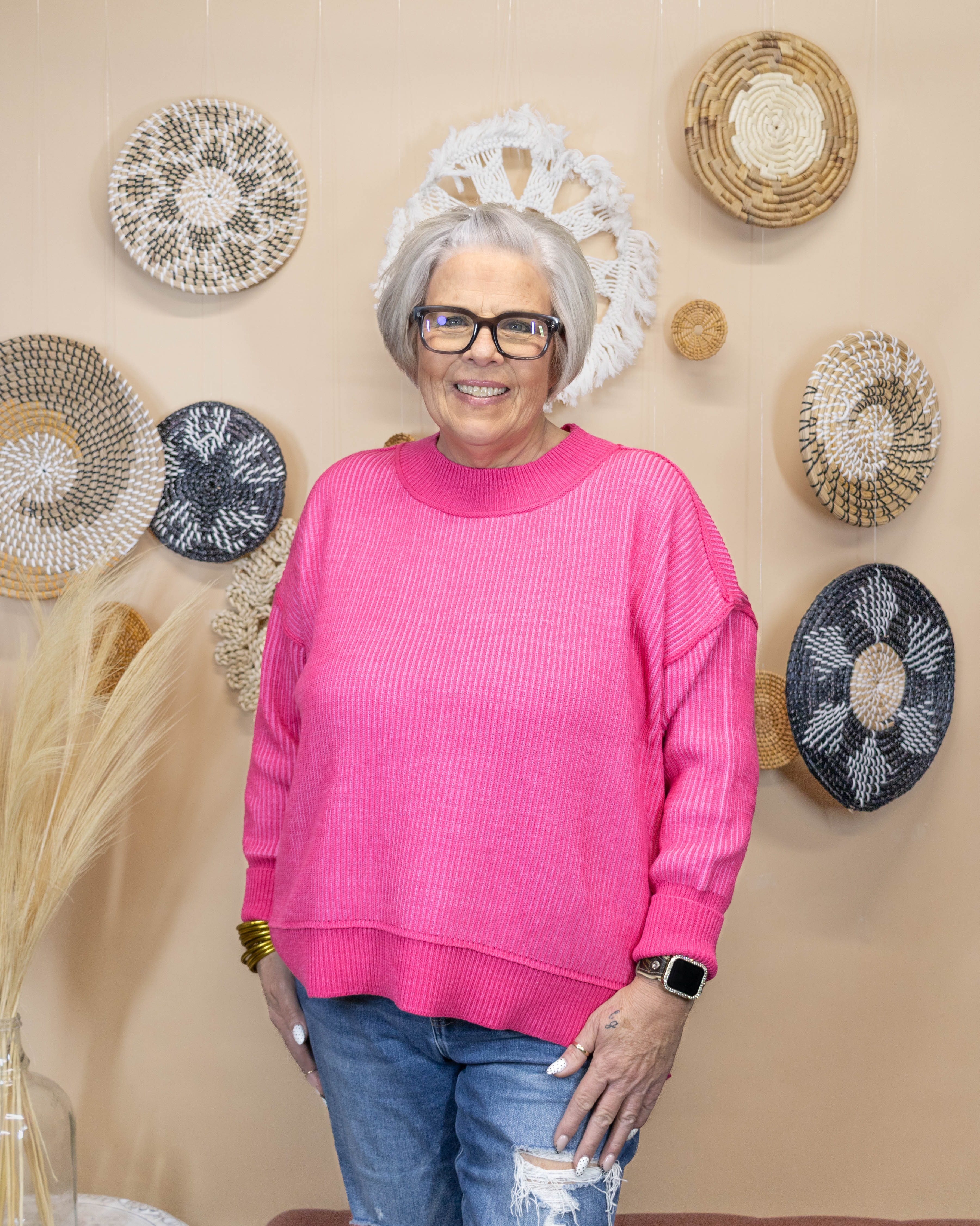 Wrap yourself in warmth without sacrificing style. This Pull Things Over Sweater delivers cozy comfort in a striking bright pink that turns heads, while its distinctive ribbed texture adds visual depth and tactile interest. The all-over ribbing creates a refined, dimensional look that elevates any casual outfit. Perfect for layering or wearing solo, this piece combines practical warmth with bold color confidence—ideal for anyone ready to make a statement.