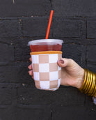 Tan Check Coozie- Small