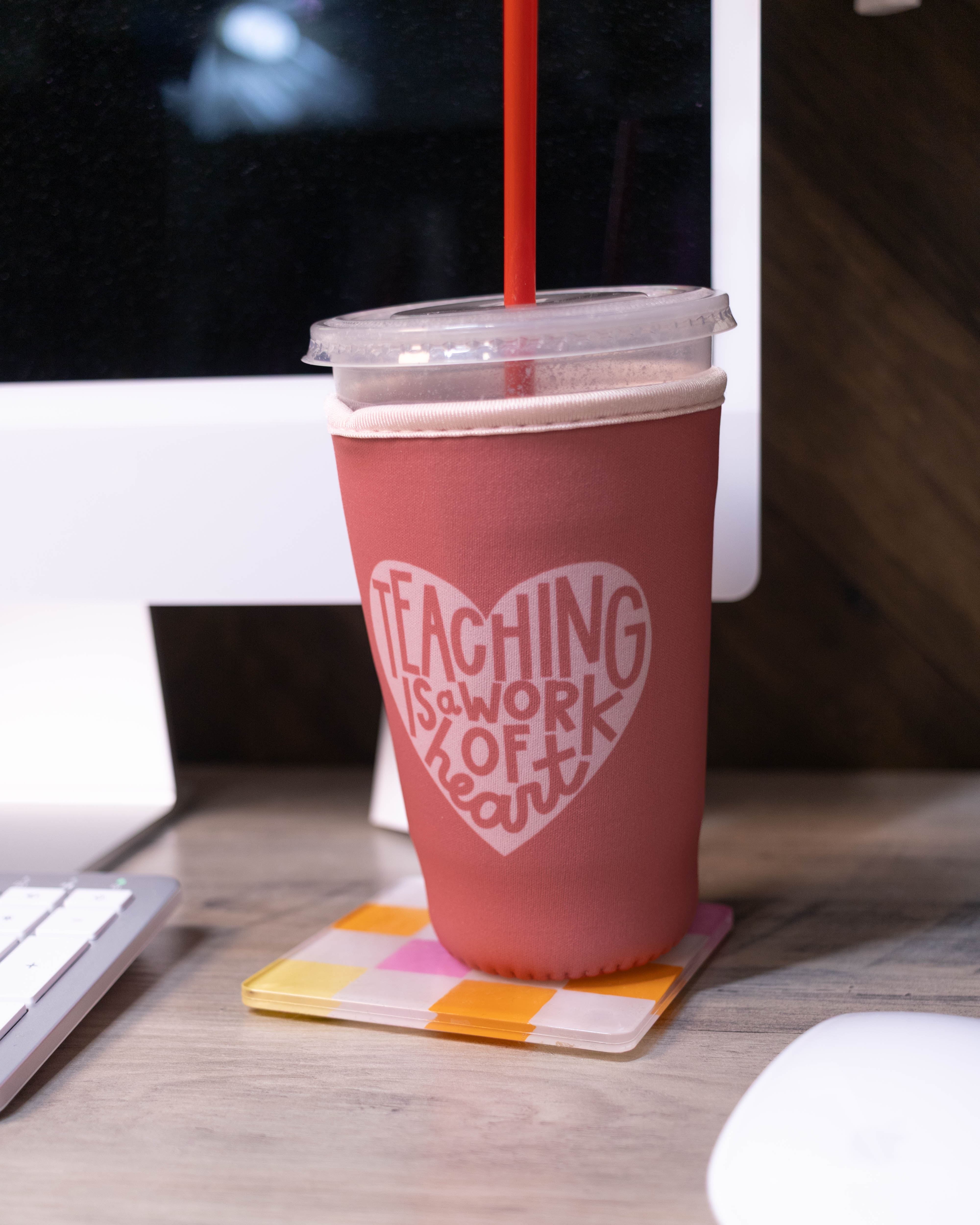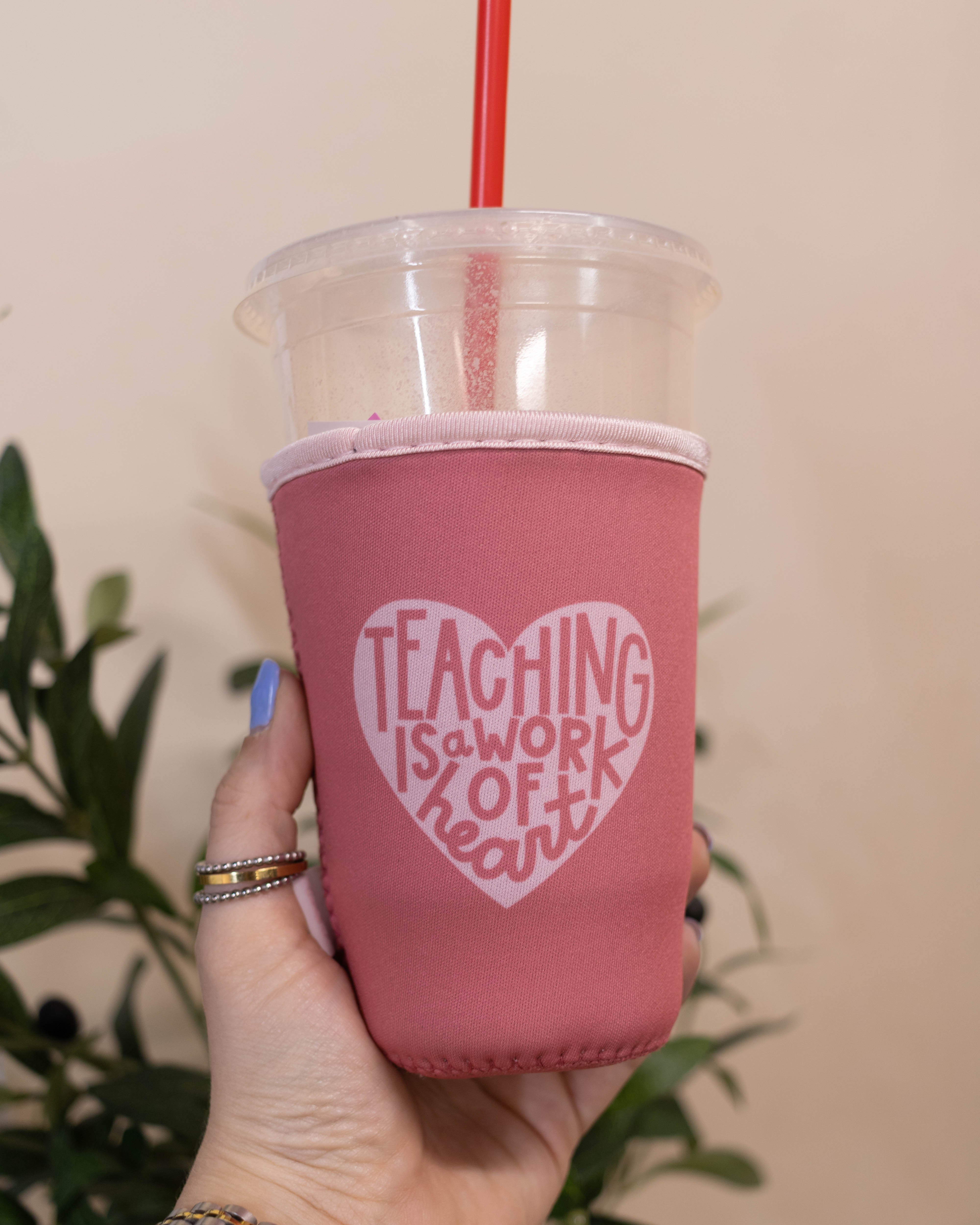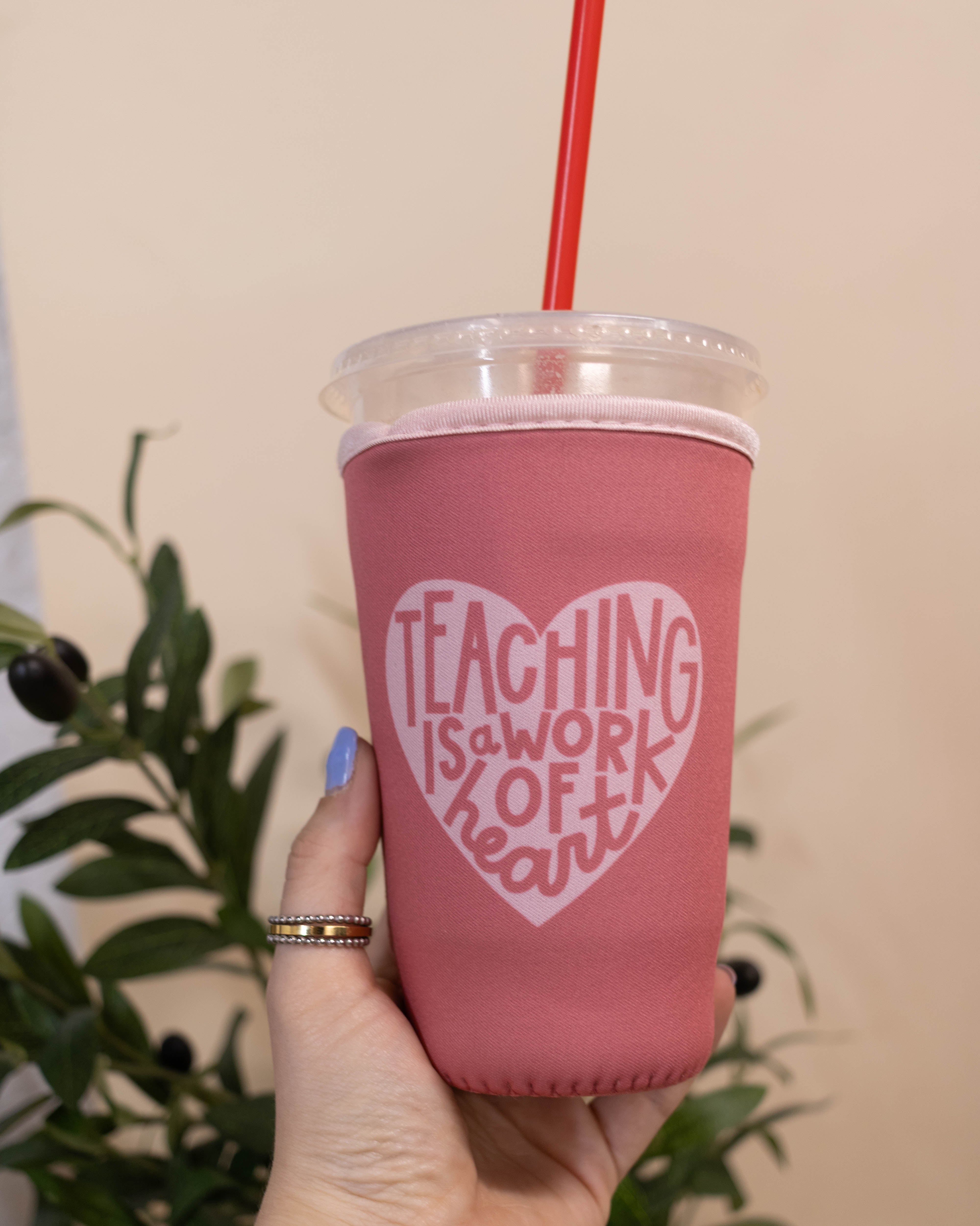 Celebrate the dedication of teachers with our Teaching Is A Work Of Heart Coffee Sleeve! This adorable sleeve featuring a hand-drawn heart-shaped design is perfect for keeping your iced coffees and teas cool or your lattes warm, making it a thoughtful gift for teacher appreciation, end-of-year presents, or just to show your gratitude to the special teachers in your life. •