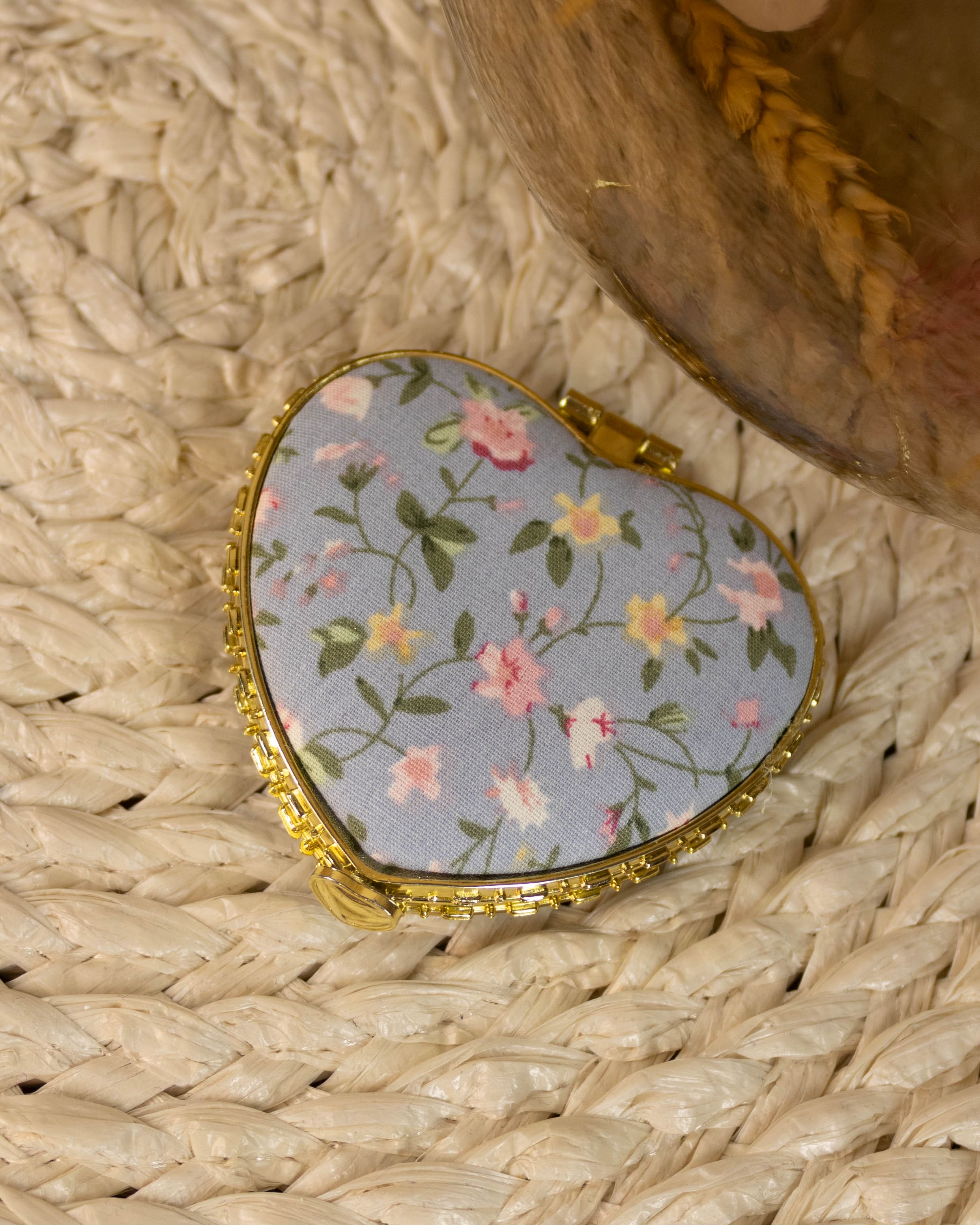 Travel Pocket Compact Handheld Mirror, designed for convenience and portability, this sleek compact mirror fits easily into your purse, pocket, or travel bag, making it perfect for quick touch-ups anytime, anywhere. Featuring a durable outer shell with fabric floral design. Travel Mirror, Pocket. Product Details: Width: 2.75" length: 2.5"