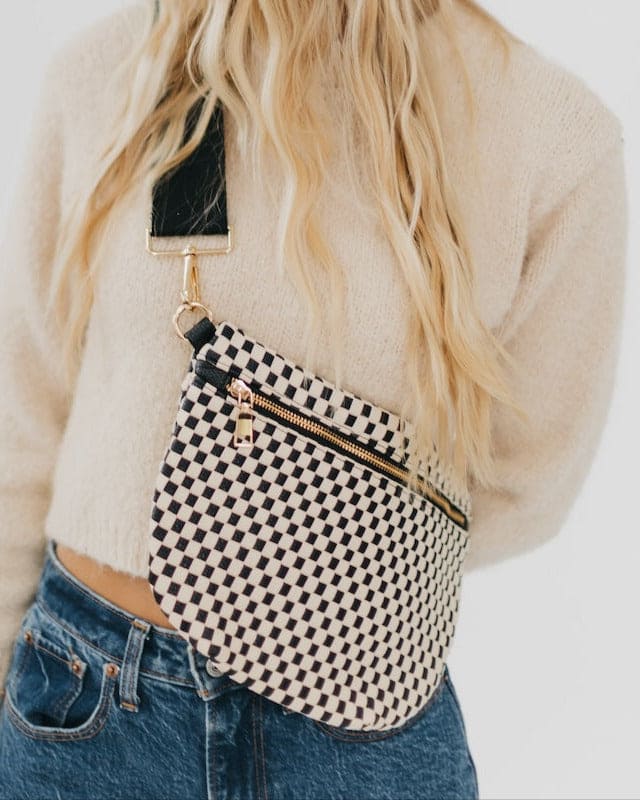 Meet the Westlyn Woven Bum Bag! Gorgeous woven vegan leather with a unique block design on the strap gives us edgy, rocker vibes.